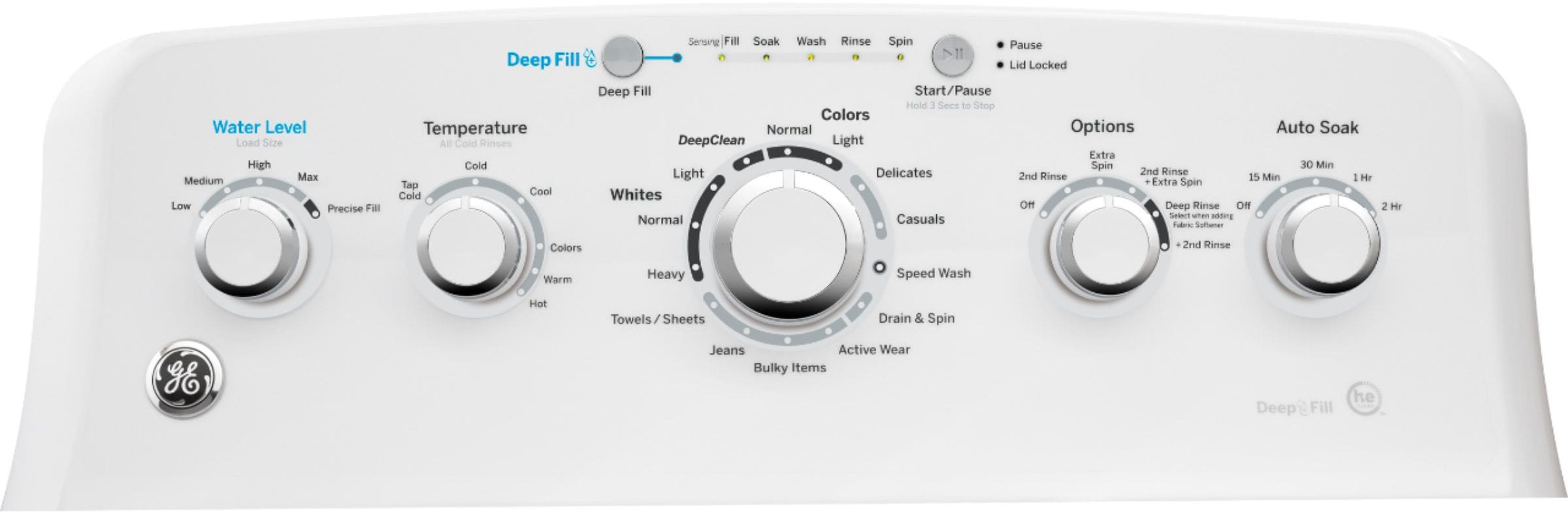 Simplify laundry washing with this 4.5 cu. ft. GE top-load washer. A speed wash setting provides clean clothes sooner and the 14 washer cycles six washer settings and six wash temperatures ensure the right setup for your fabrics. The auto soak option on the GE top-load washer helps you battle pesky stains before washing begins.
