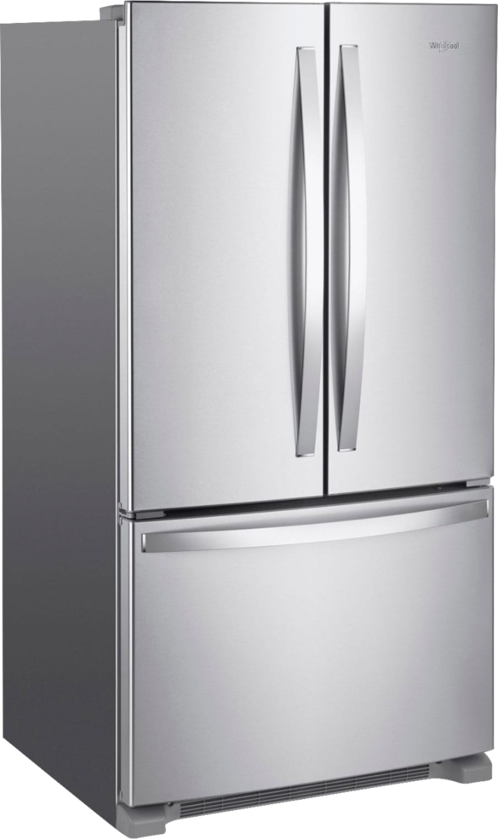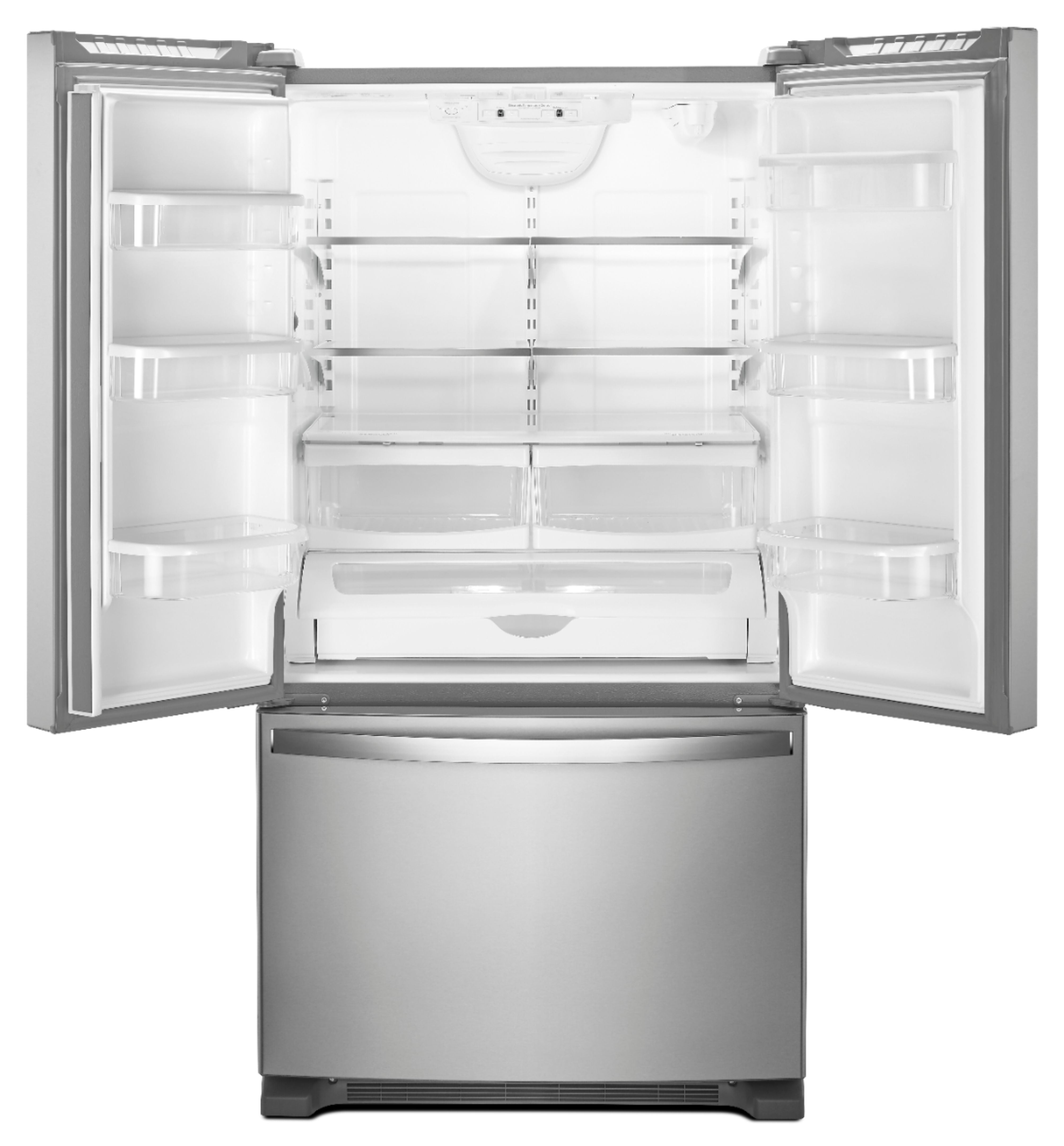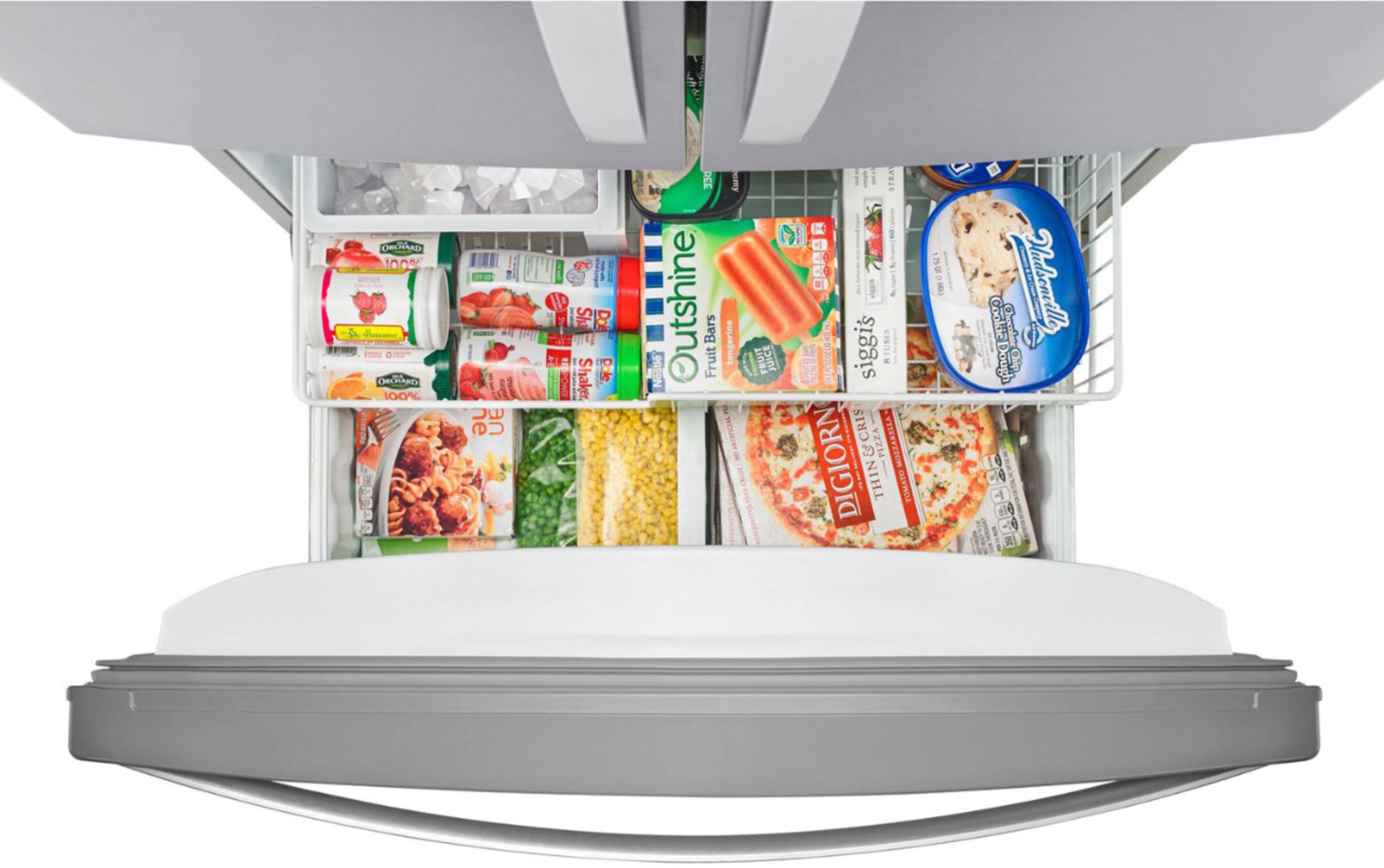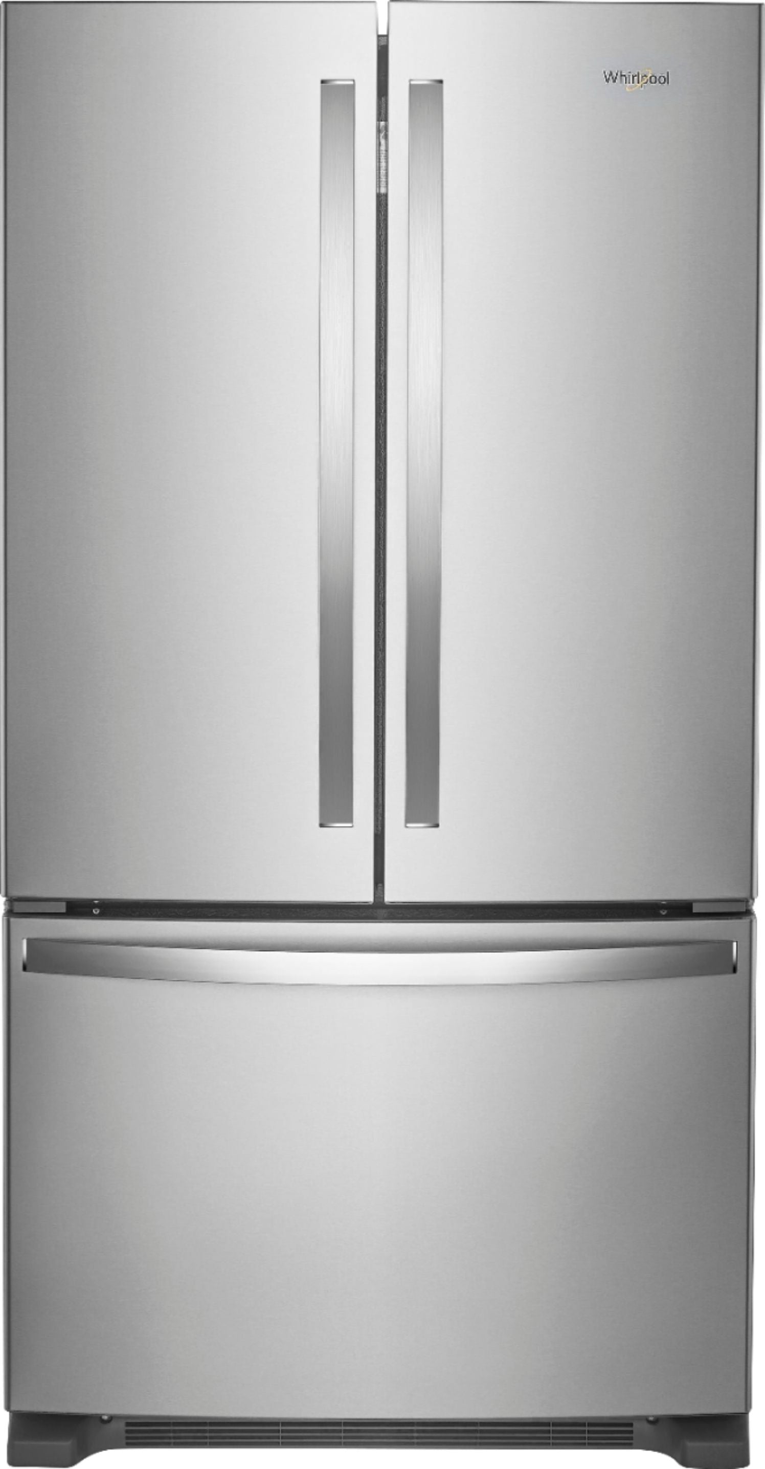 Fit all your groceries with room to spare in this 36-inch Whirlpool French door refrigerator. With 25 cu. ft. of combined fridge and freezer space this appliance stores plenty of fresh and frozen food items. Ice and water are easily accessible via the convenient water dispenser on this Whirlpool French door refrigerator.