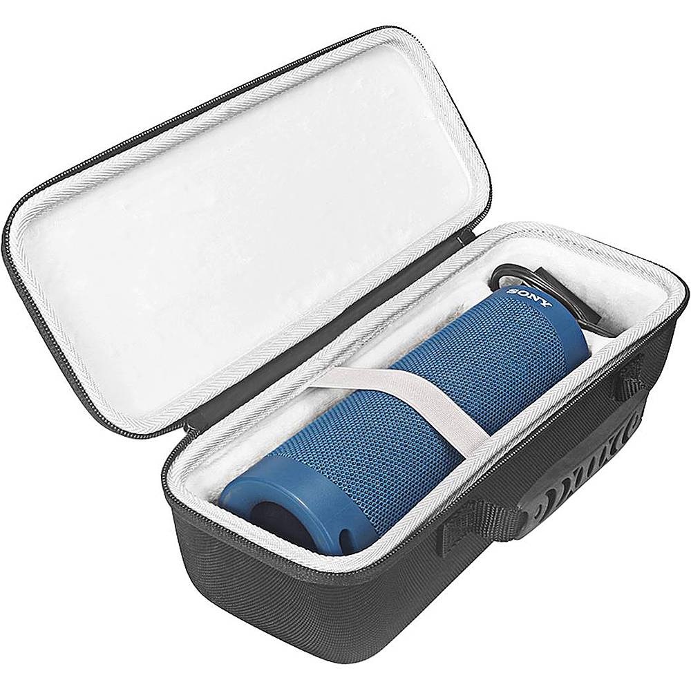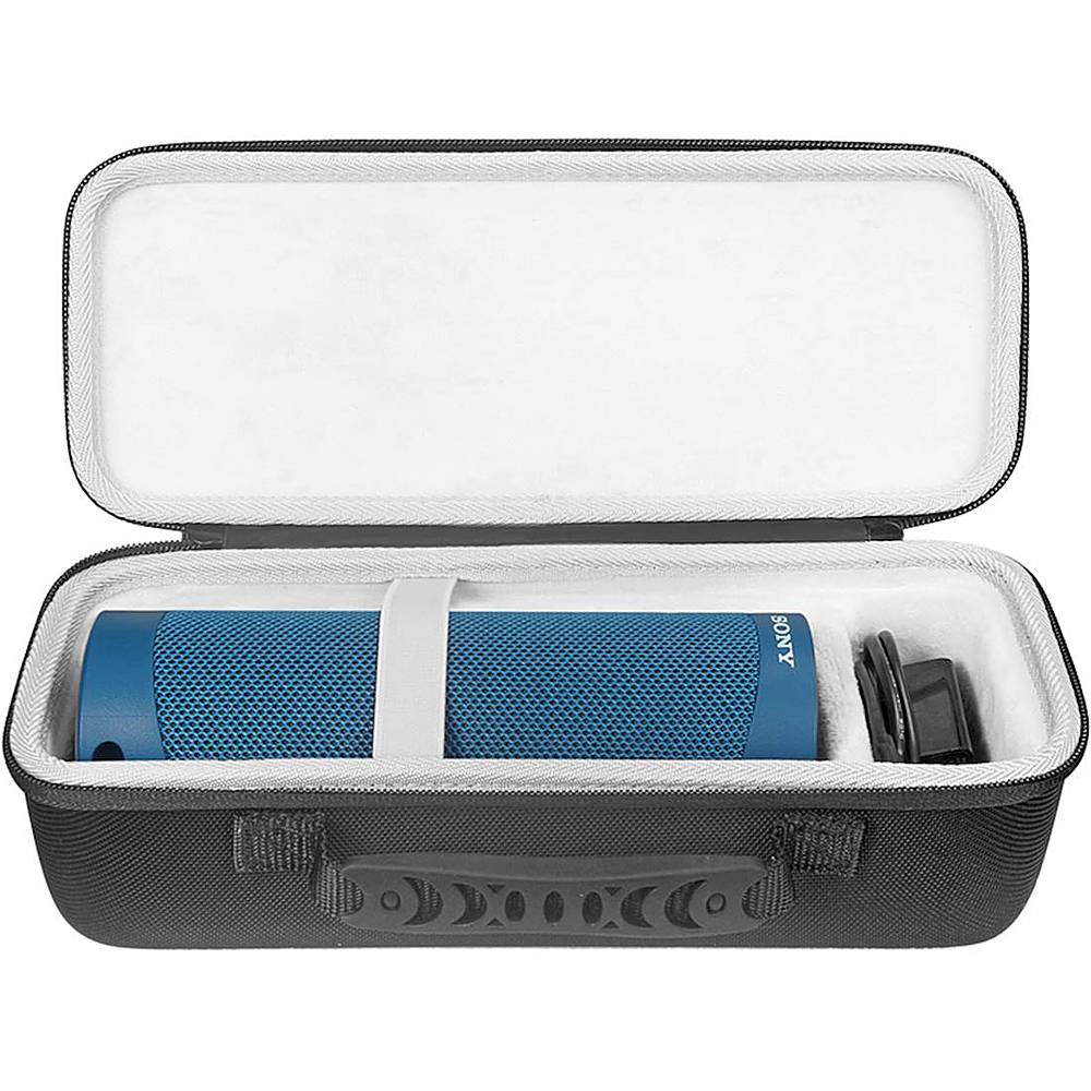 Safeguard your Sony SRS-XB23 Bluetooth speaker with this SaharaCase travel carry case. The water-resistant construction protects your device against bad weather conditions, while the shockproof exterior guards your speaker against dents and scratches in case of accidental drops. This black SaharaCase travel carry case has a lightweight design that makes transportation easy and is durable for long-lasting use.