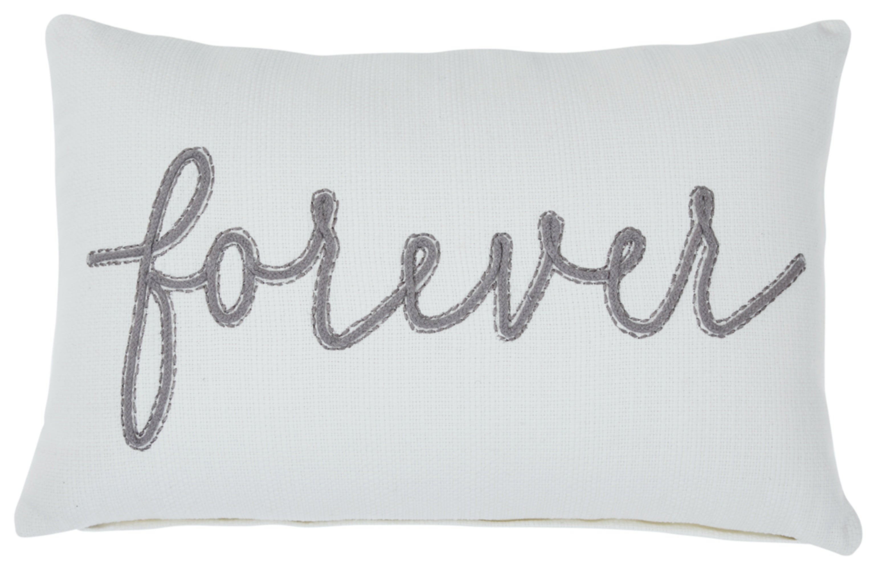 The “Forever pillow offers a beautiful sentiment embroidered in gray. Add a sense of classic style to your decor with this piece’s graceful script.