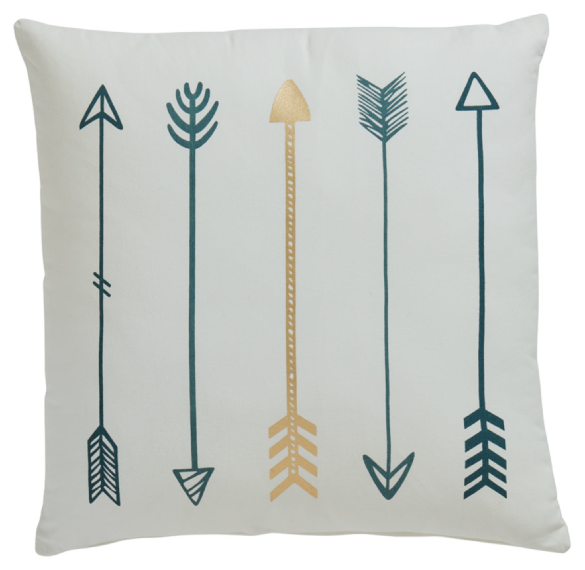Add a distinctive piece of decor to your room with the Gyldan accent pillow. Adorned with a pattern of arrows in teal, white and metallic goldtone, this striking print adds a splash of style to any decor. Featuring a cotton cover with knife edge construction and zipper closure, this pillow is perfect for use on a bed or chair to freshen up your living space in a beautiful way.