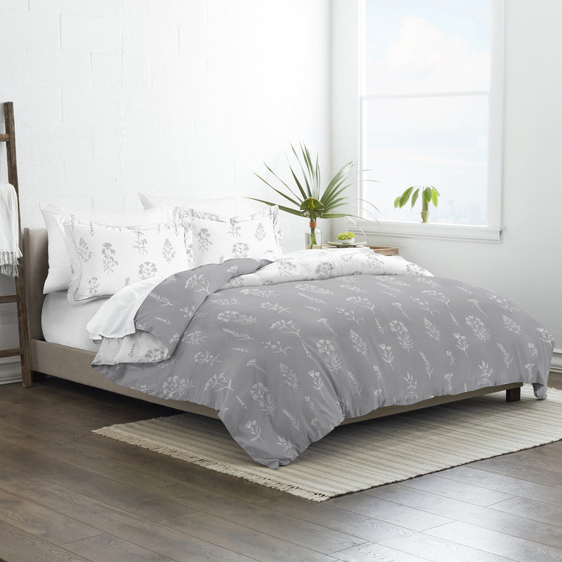 Home Collection Premium Ultra Soft Botany Floral 3-Piece Reversible Duvet Cover Set Light Gray