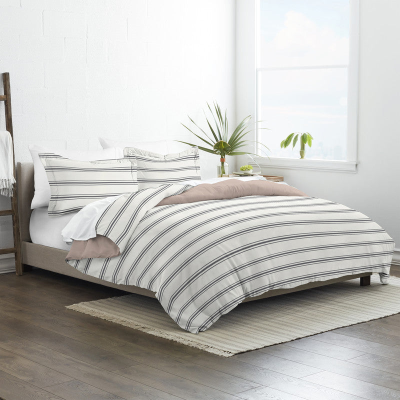 Home Collection Premium Ultra Soft Desert Stripe 3-Piece Reversible Duvet Cover Set Rose