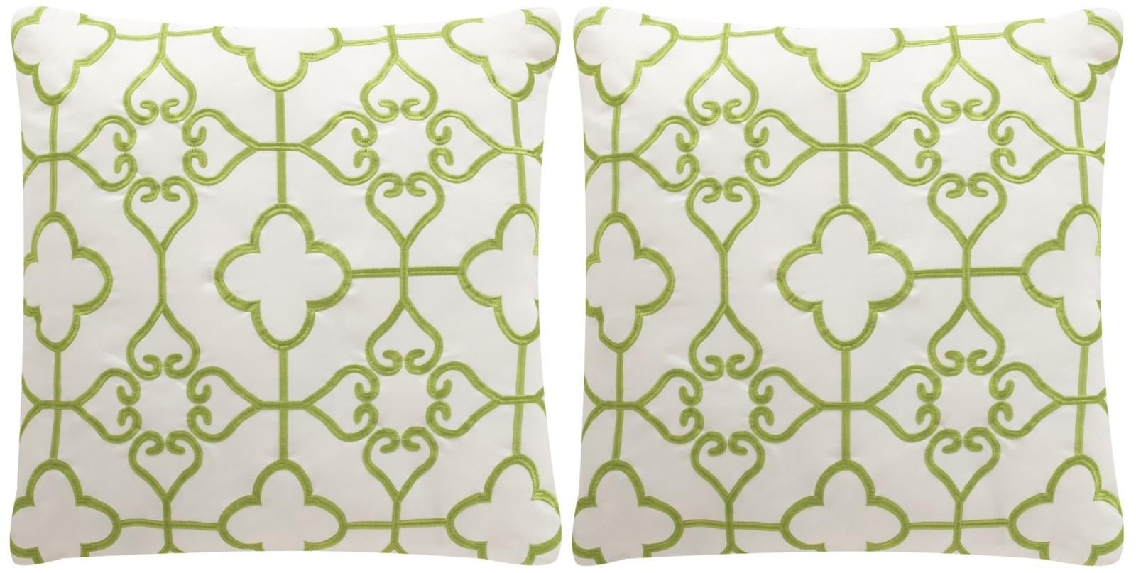 Garden lattice patterns, colored in soft sweet green, reach across the silky white background of the Nadia accent pillow from Soleil Indoor-Outdoor Accessories Collection. Made from durable, easy-care polypropylene fiber for long-lasting, weather-resistant beauty.