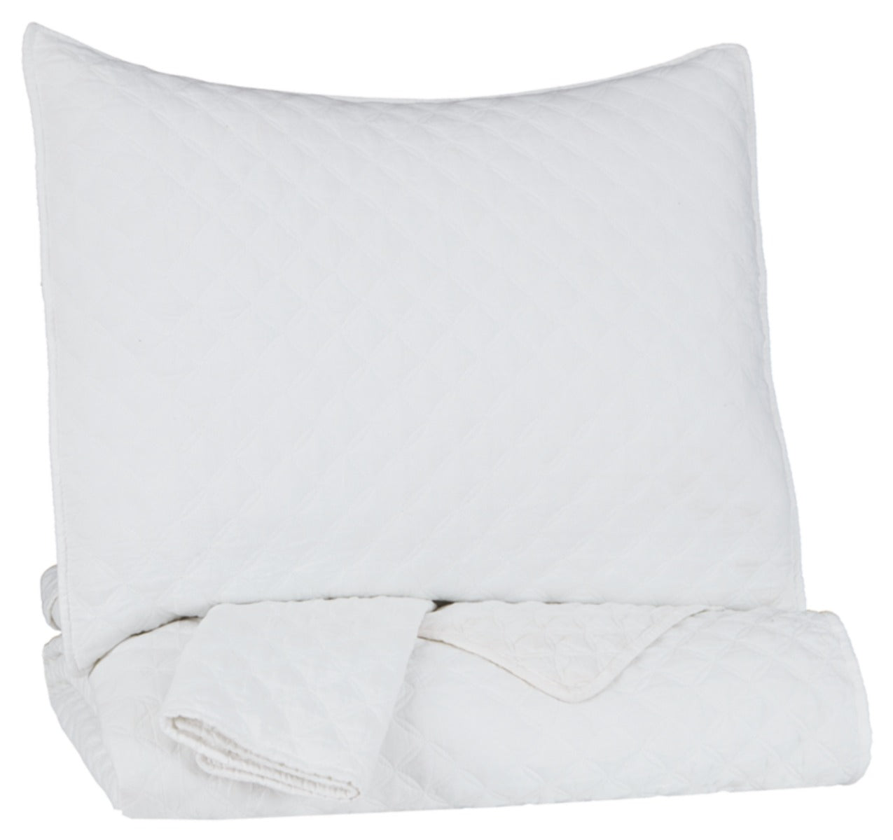 Relax and recharge with the Ryter coverlet set. It’s quilted diamond design in white stonewash is a look that complements just about any decor style. Touting casual-cool flair and a soft feel, jumping into bed is sure to be your favorite part of each night.
