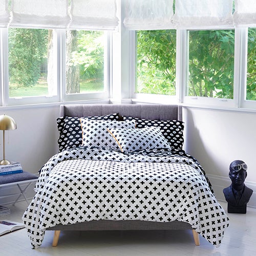 Add a geometric touch on your bedroom. Stylish comforter brights up any sleep space. Responsibly made of 100% cotton shell fabric with 90% recycled Polyester in fill. Cotton produced under Better Cotton Initiative standards. BCI ensures production of this cotton is better for the environment in which it grows. Standard 100 by OEKO-TEX certified and carries the MADE IN GREEN label. Free of harmful dyes and finishes. Machine washable and dryer safe. Includes: King comforter (106"W x 92"L). 2 King shams (20"W x 36"L).