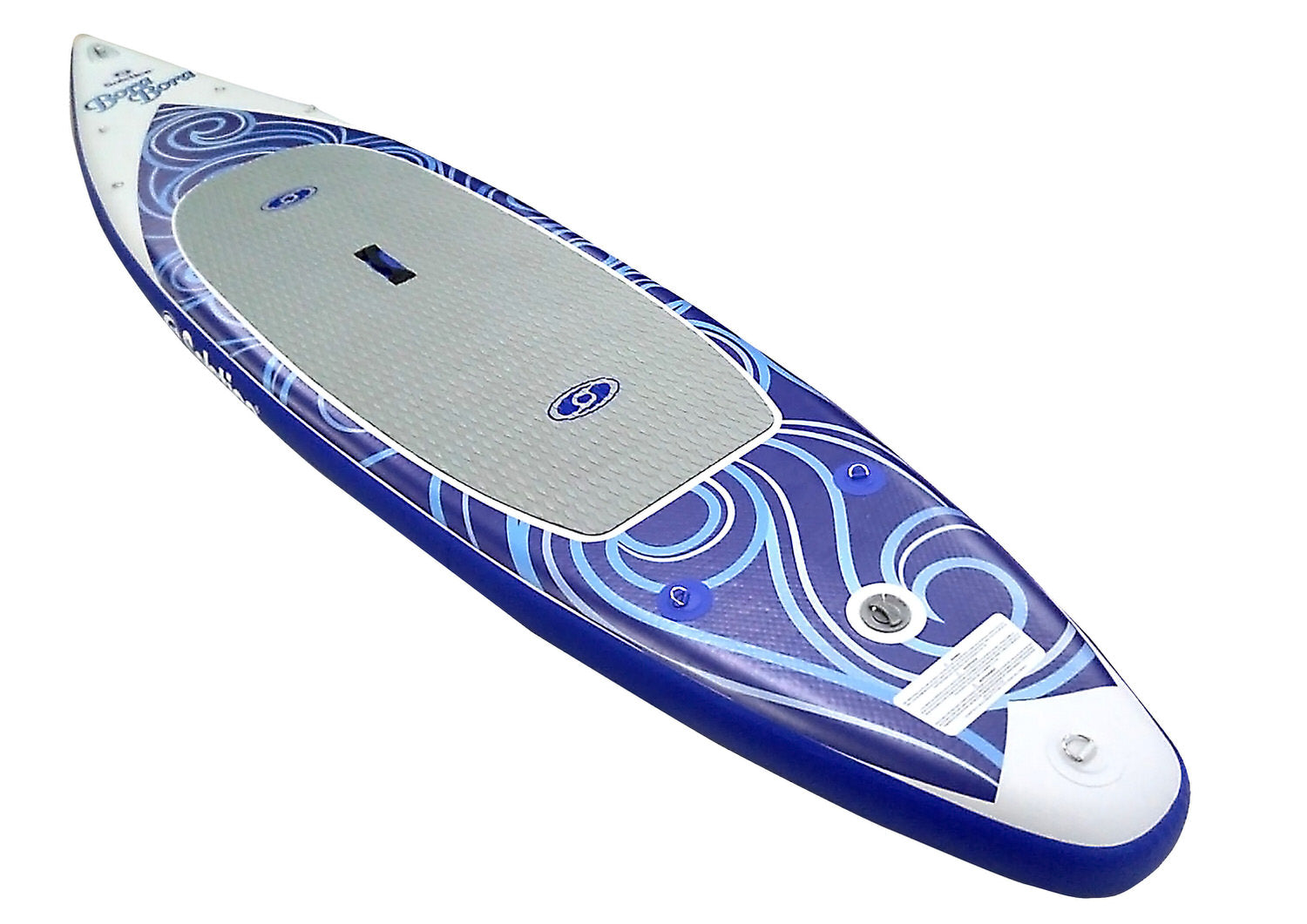 The strength and rigidity of the core comes from super high pressure drop stitched material. The 6" core has a multi-layer construction that reduces flex. Extensive EVA non slip traction on top for grip and comfort. Single skeg design (9" fin under the water) is removeable. Design is perfect for performance and tracking in various wave and water conditions. 4 Stainless tie downs for securing gear. Inflated dimensions: 12ft 6in. 325lb Weight capacity. Includes: Hi-Pressure 20 PSI pump. H3 Inflate/Deflate valve. Storage bag.
