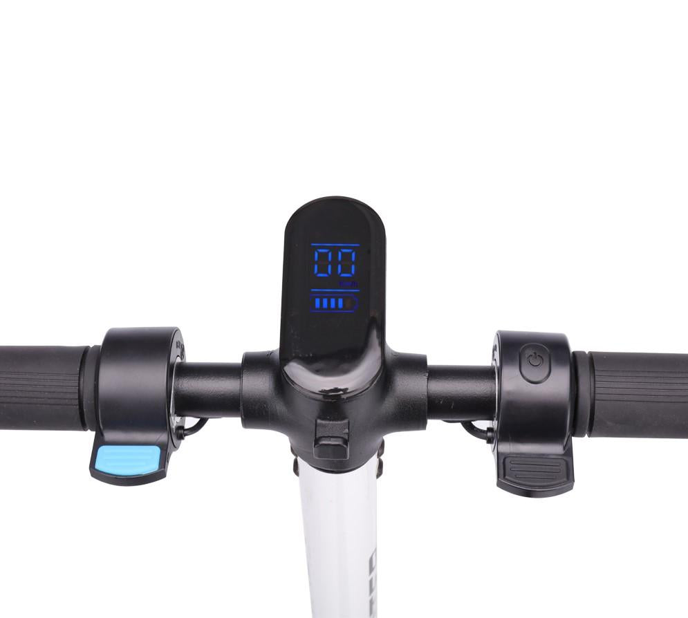 Modern design: Crafted from aircraft grade aluminum with high quality metallic finishes, and a sleek., More convenient: at 26lbs easy to hand-carry on public transportation and quickly folds for storage at home, in the office, or in your car, LED Display: Easily view your current speed and battery life, LED headlight and tail break light: Ride at night! The ES-S8 is equipped with an ultra bright LED headlight and tail light, Ride Safe: Electric Break & Rear fender foot break, 6.5'' Solid tire, easily ride over bumps and cracks in your city streets and sidewalks.No flat tire worry.