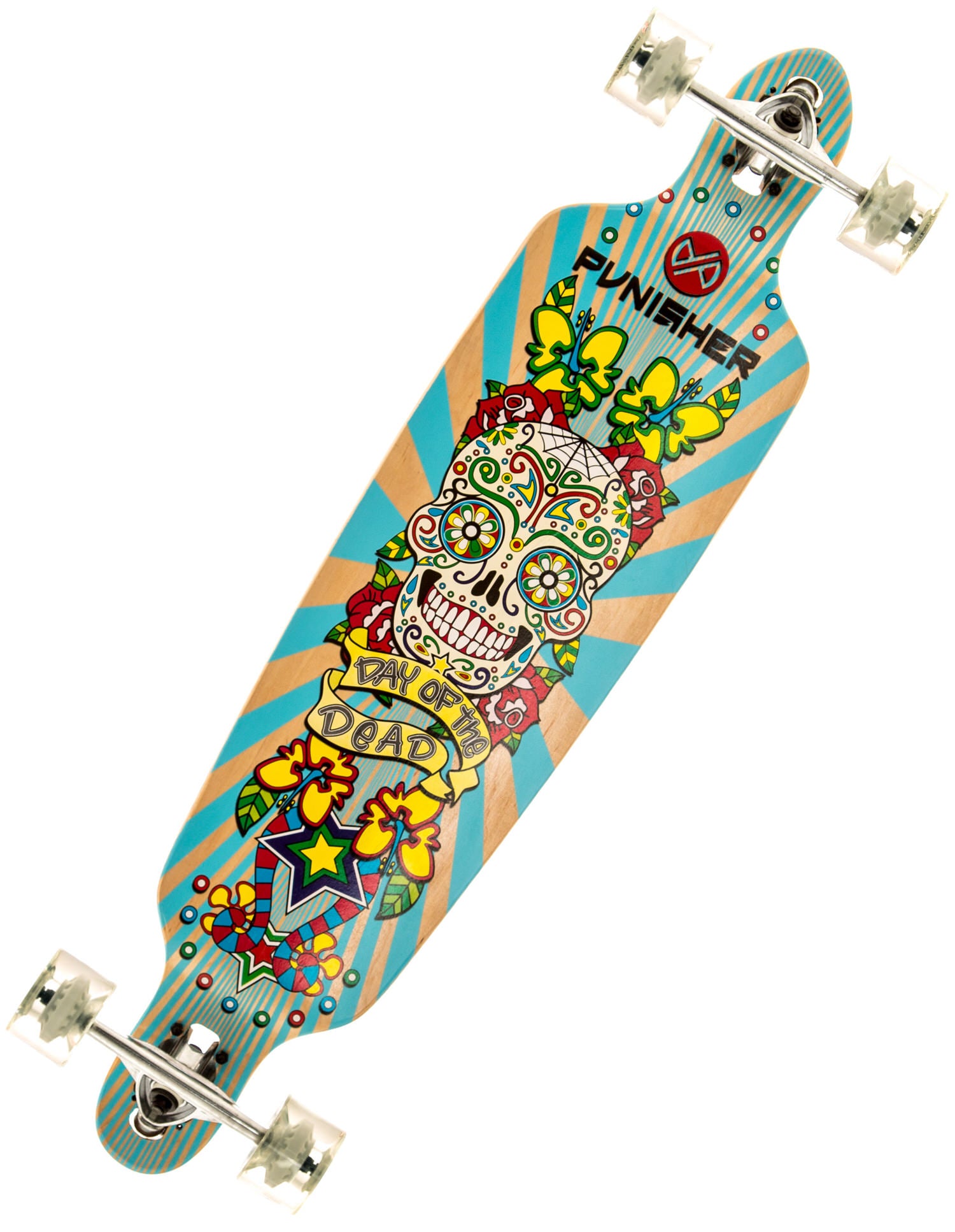40" Longboard with Day Of The Dead graphic design and black grip tape.