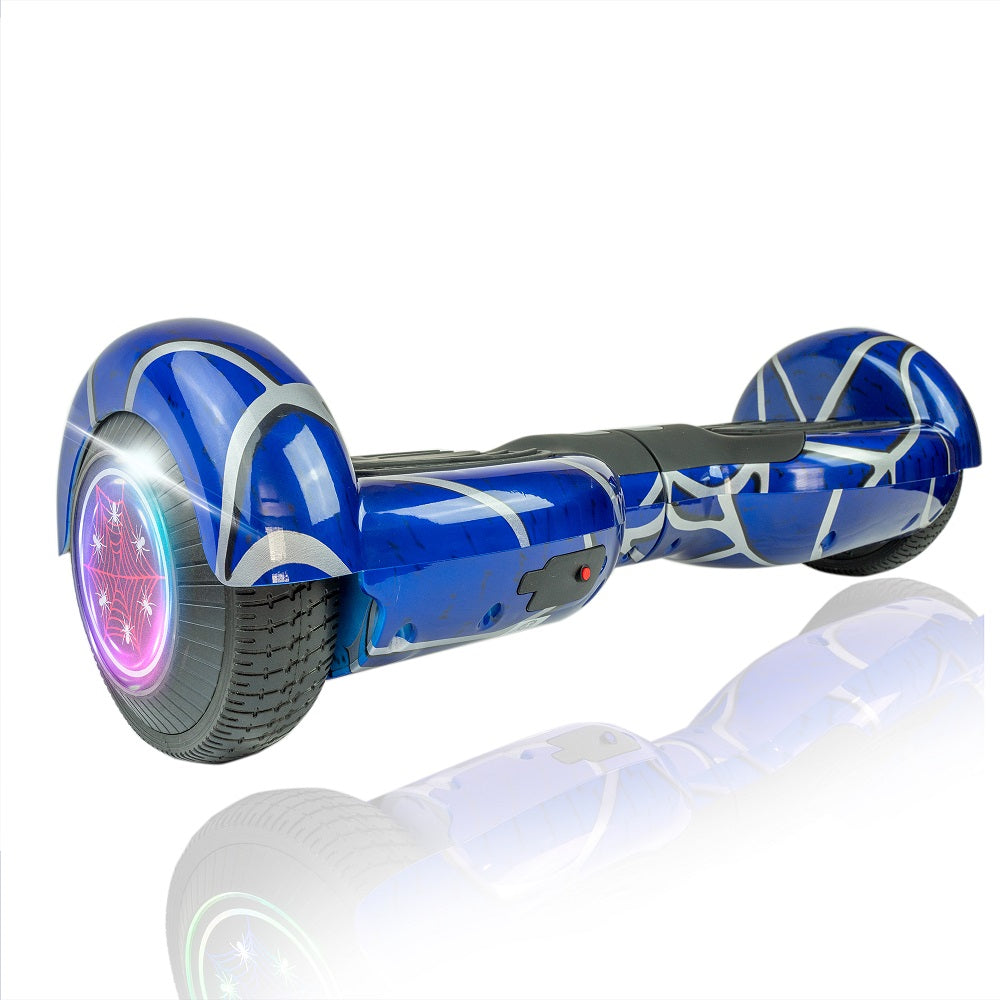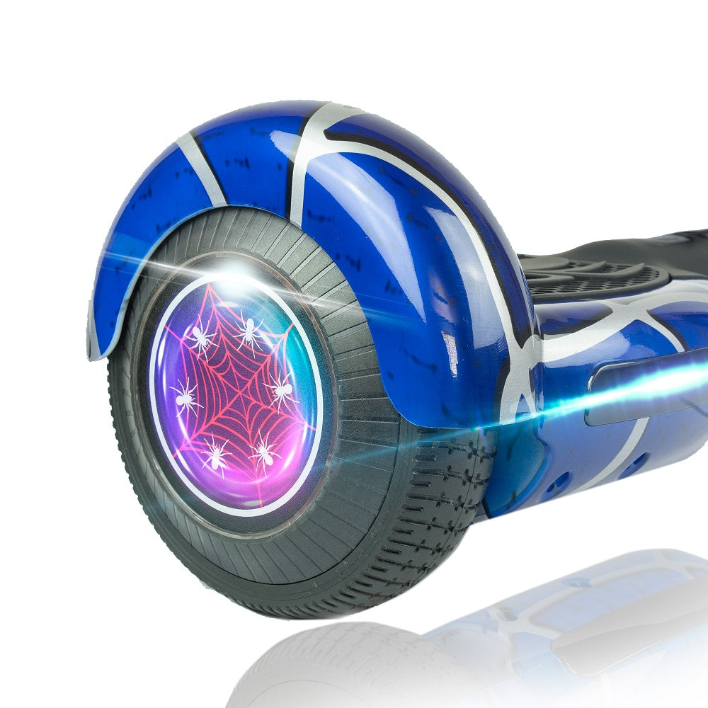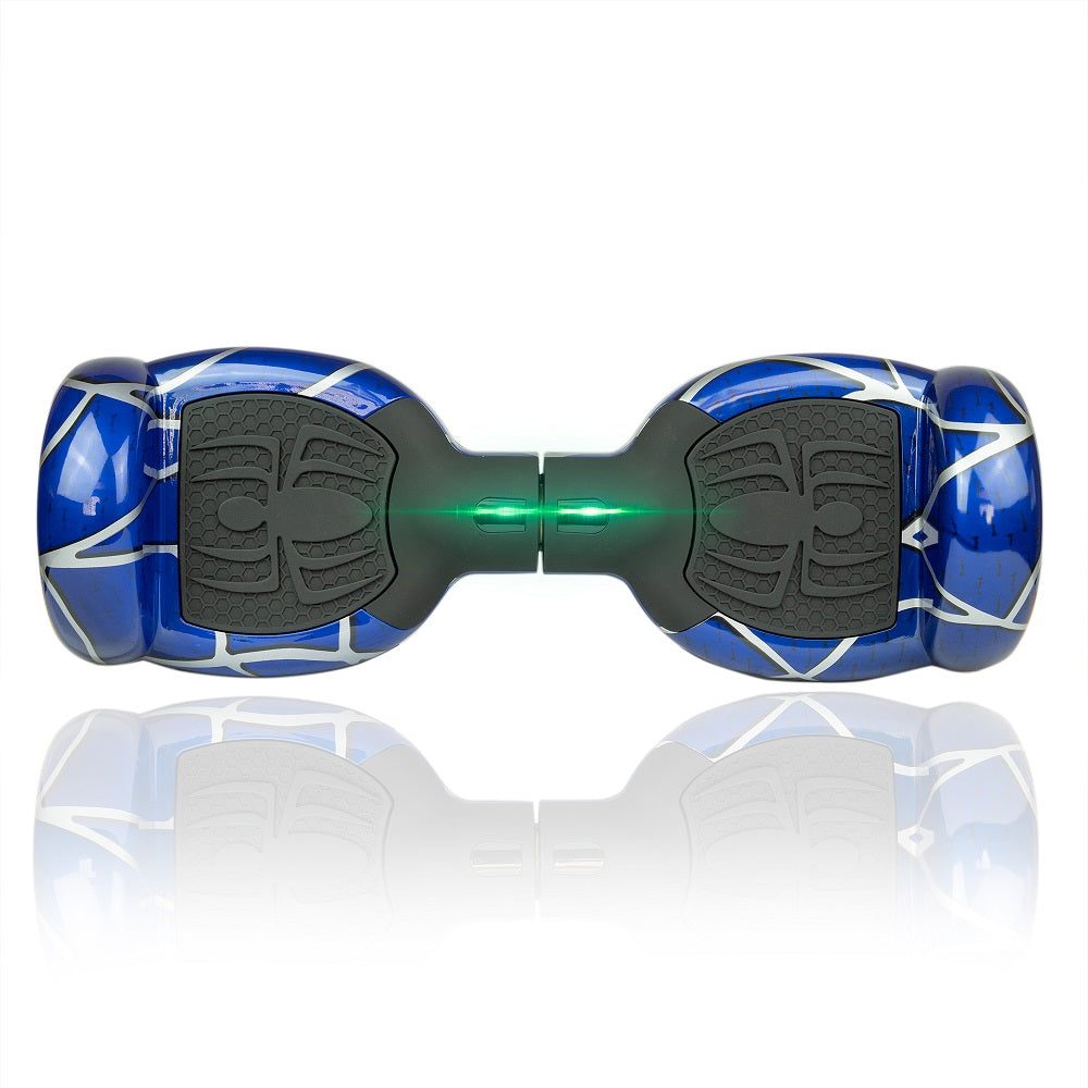 Introducing our most exciting designed hoverboard-The Webster. The unique stylish spider design cover the whole body of the hoverboard. Chrome finished spider painting, spider shaped foot pads, spider web LED lightning wheel. All for eye-catching and head-turning. We have also upgraded the motor to Dual 250W for better incline performance. Now grab the bug and hover through your neiborhood.