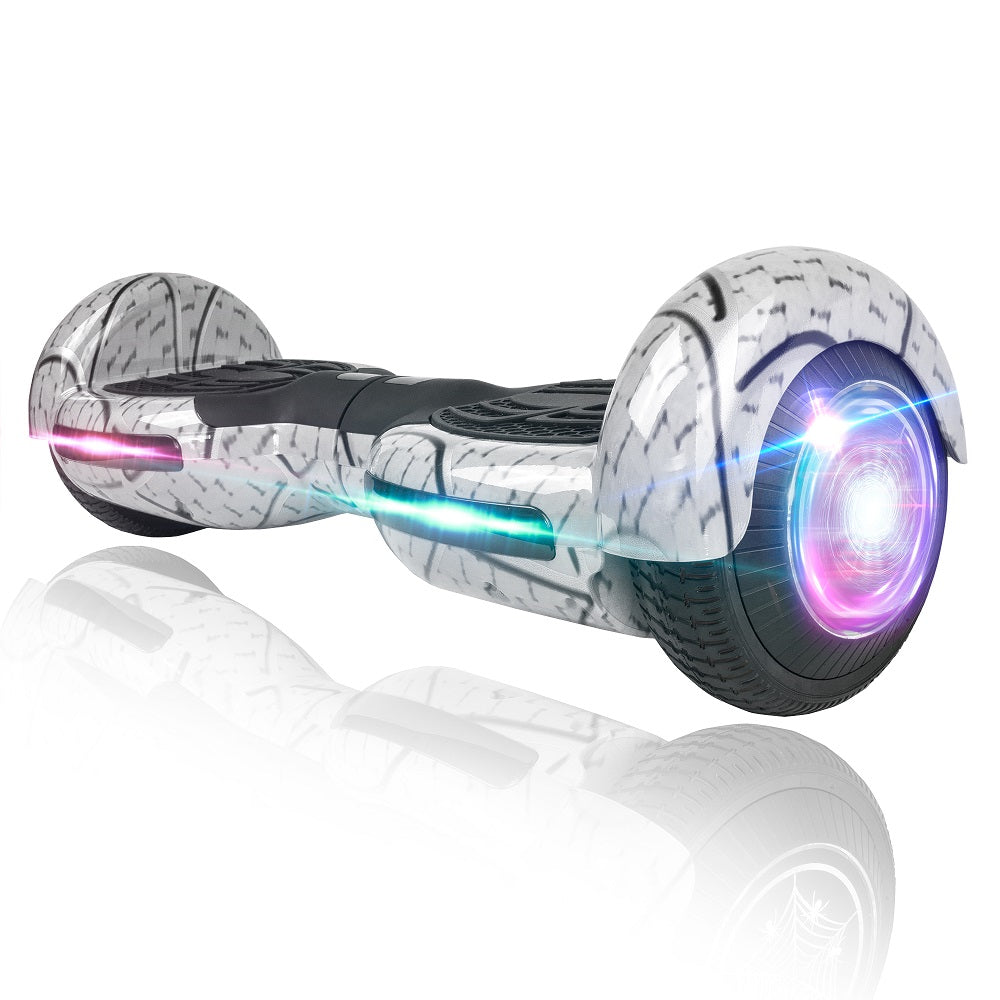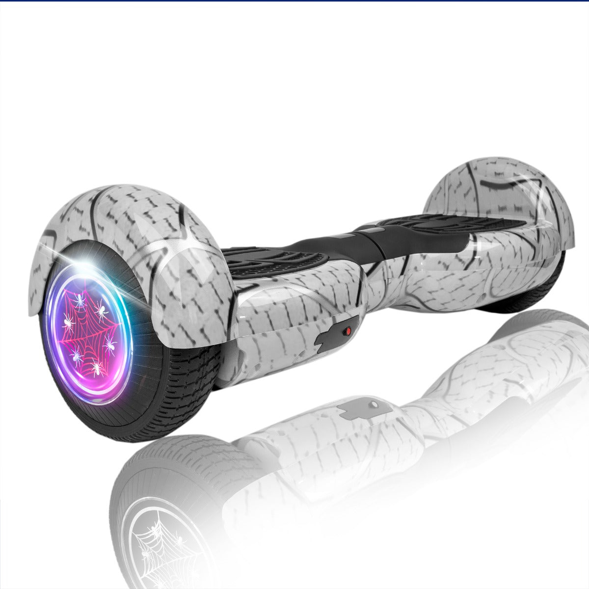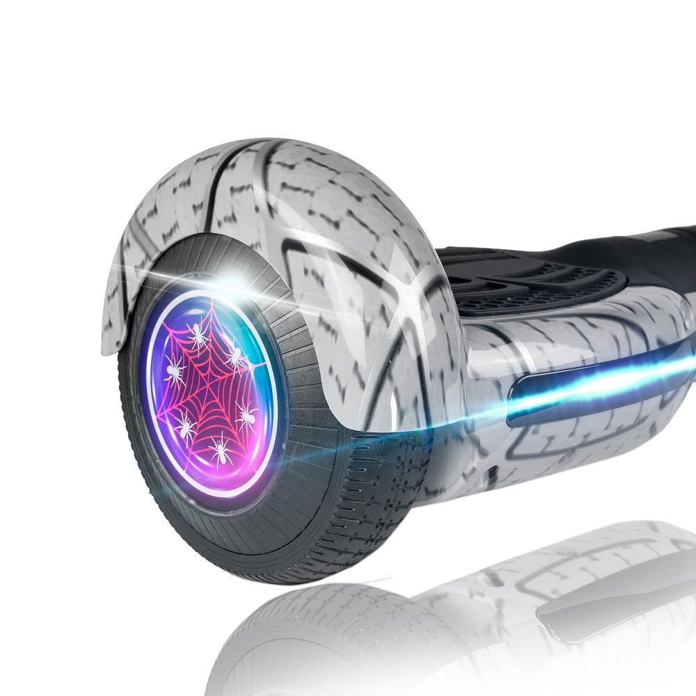 Introducing our most exciting designed hoverboard-The Webster. The unique stylish spider design cover the whole body of the hoverboard. Chrome finished spider painting, spider shaped foot pads, spider web LED lightning wheel. All for eye-catching and head-turning. We have also upgraded the motor to Dual 250W for better incline performance. Now grab the bug and hover through your neiborhood.