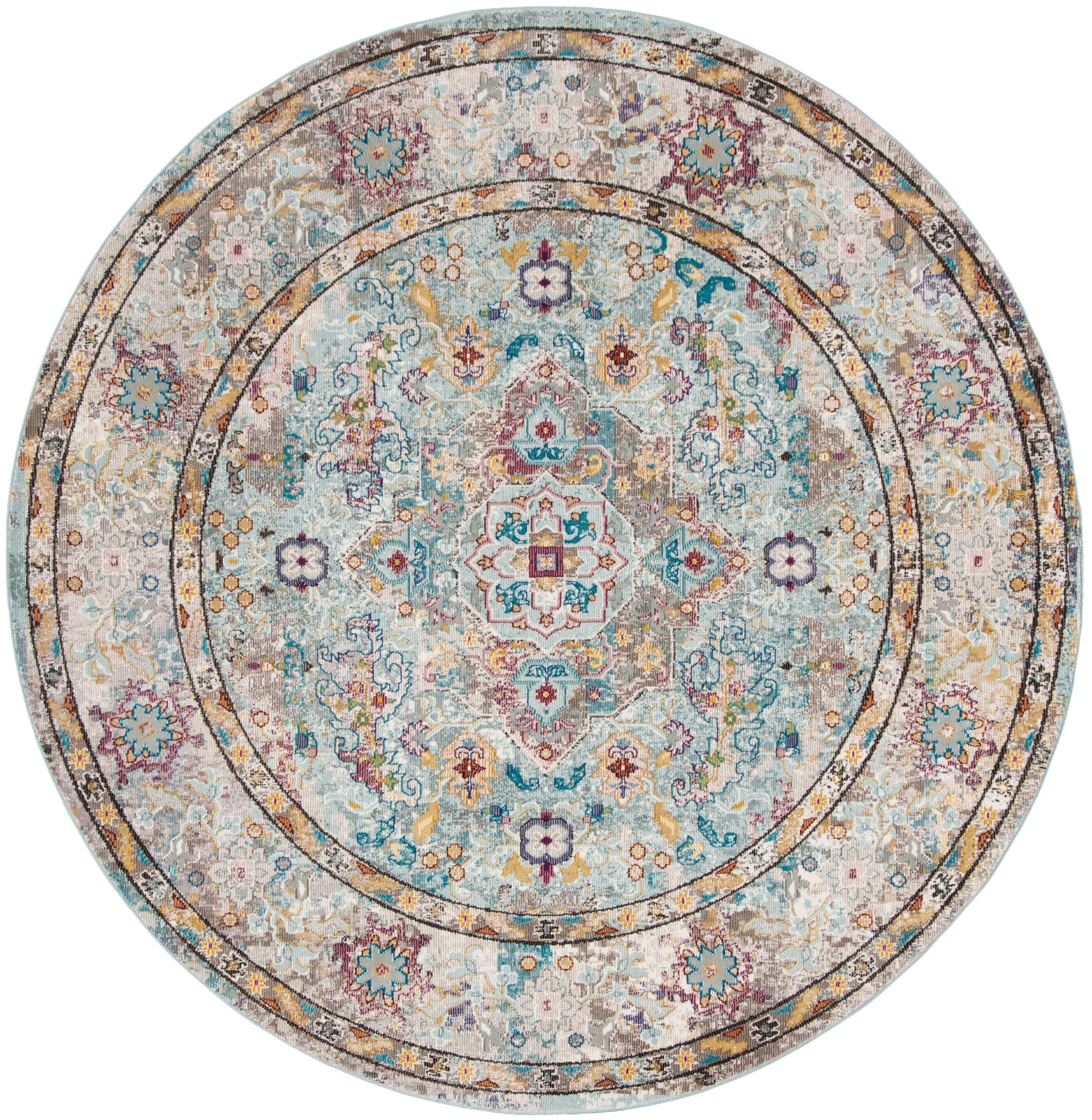 Aria ARA183E 6'5" X 6'5" Round Beige & Blue Rug