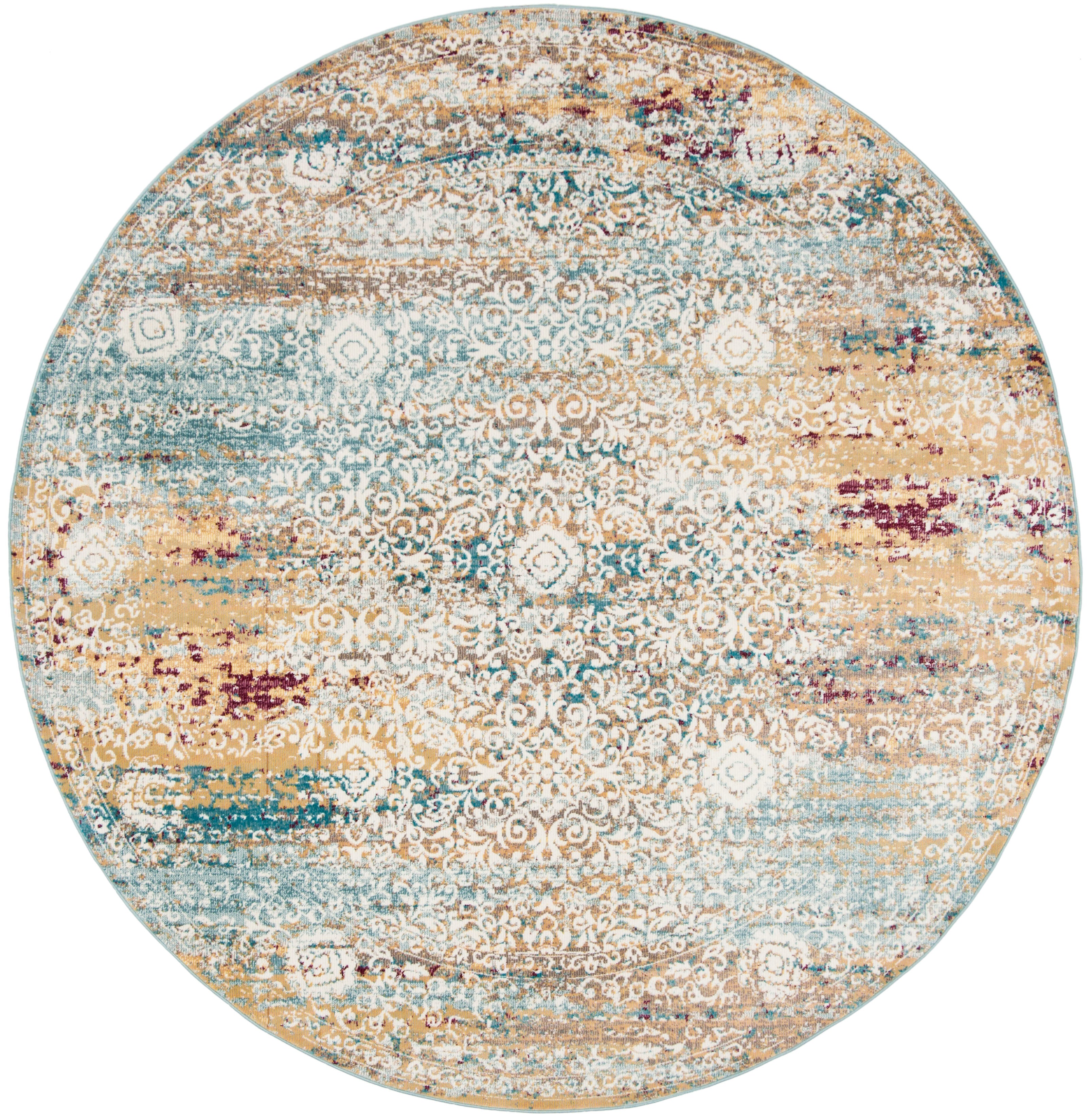 Aria ARA183Y 6'5" X 6'5" Round Yellow & Cream Rug