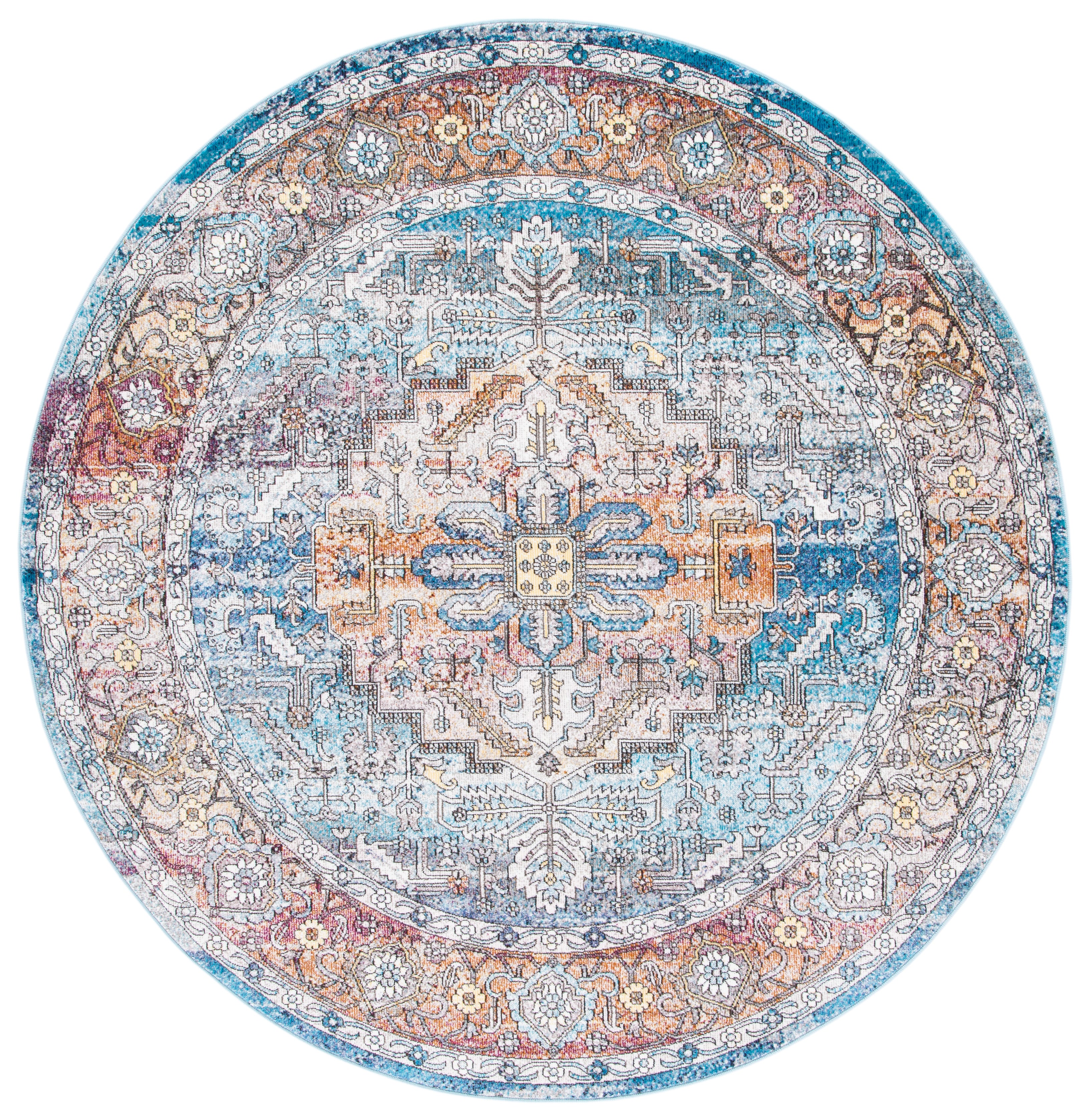Aria ARA191K 6'5" X 6'5" Round Turquoise & Light Orange Rug