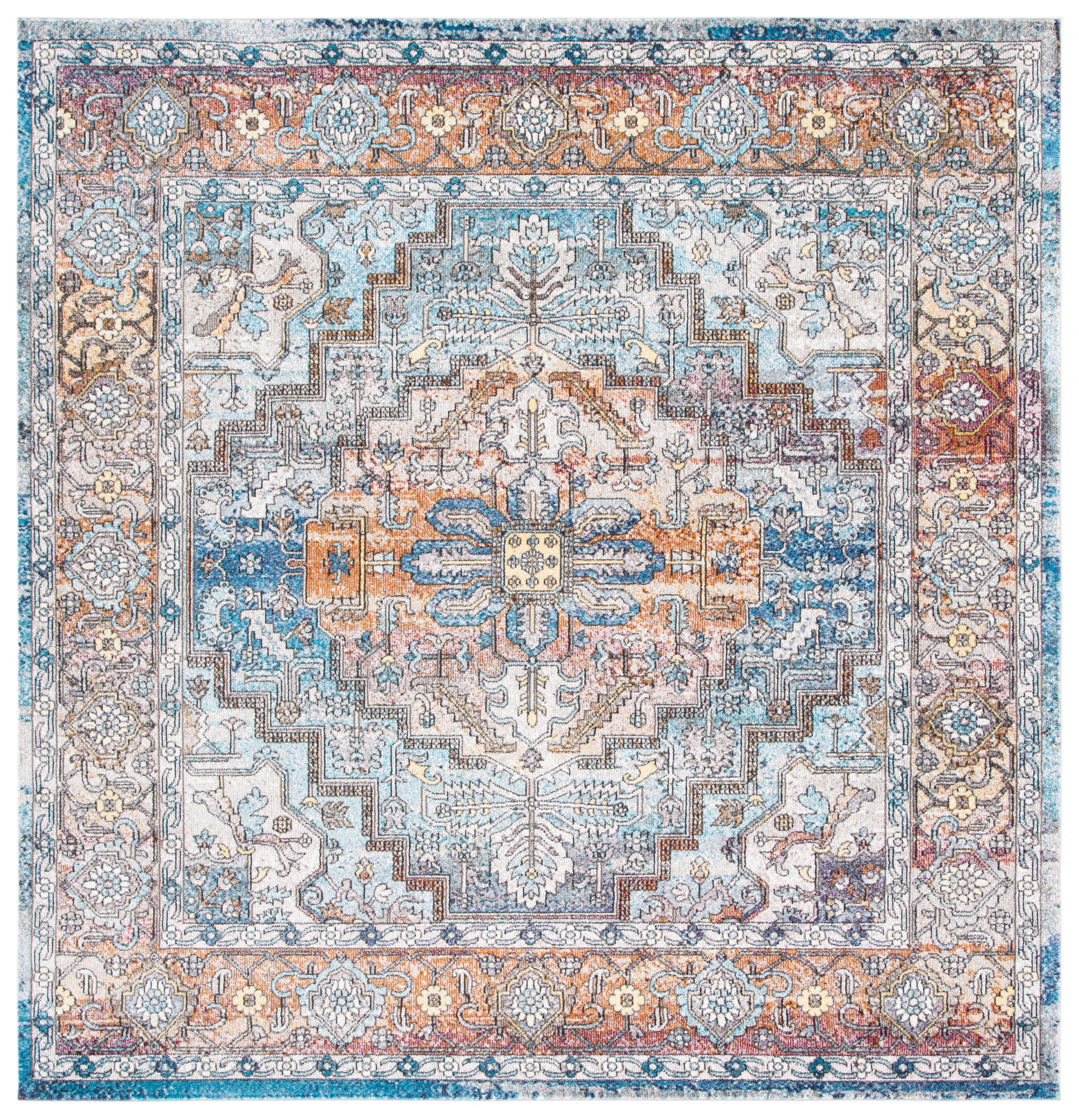 Aria ARA191K 6'5" X 6'5" Square Turquoise & Light Orange Rug