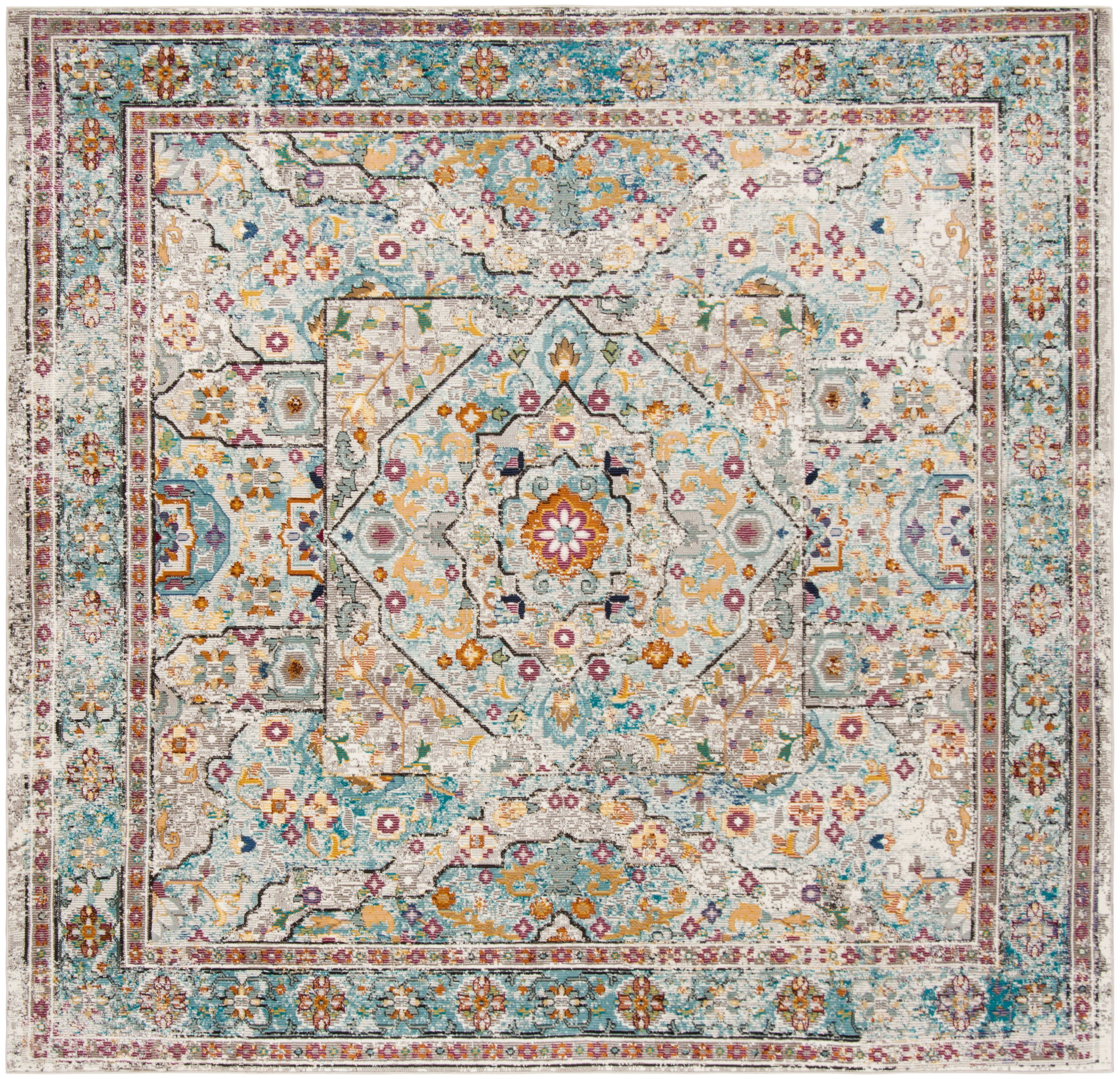 Aria ARA199C 6'5" X 6'5" Square Cream & Blue Rug