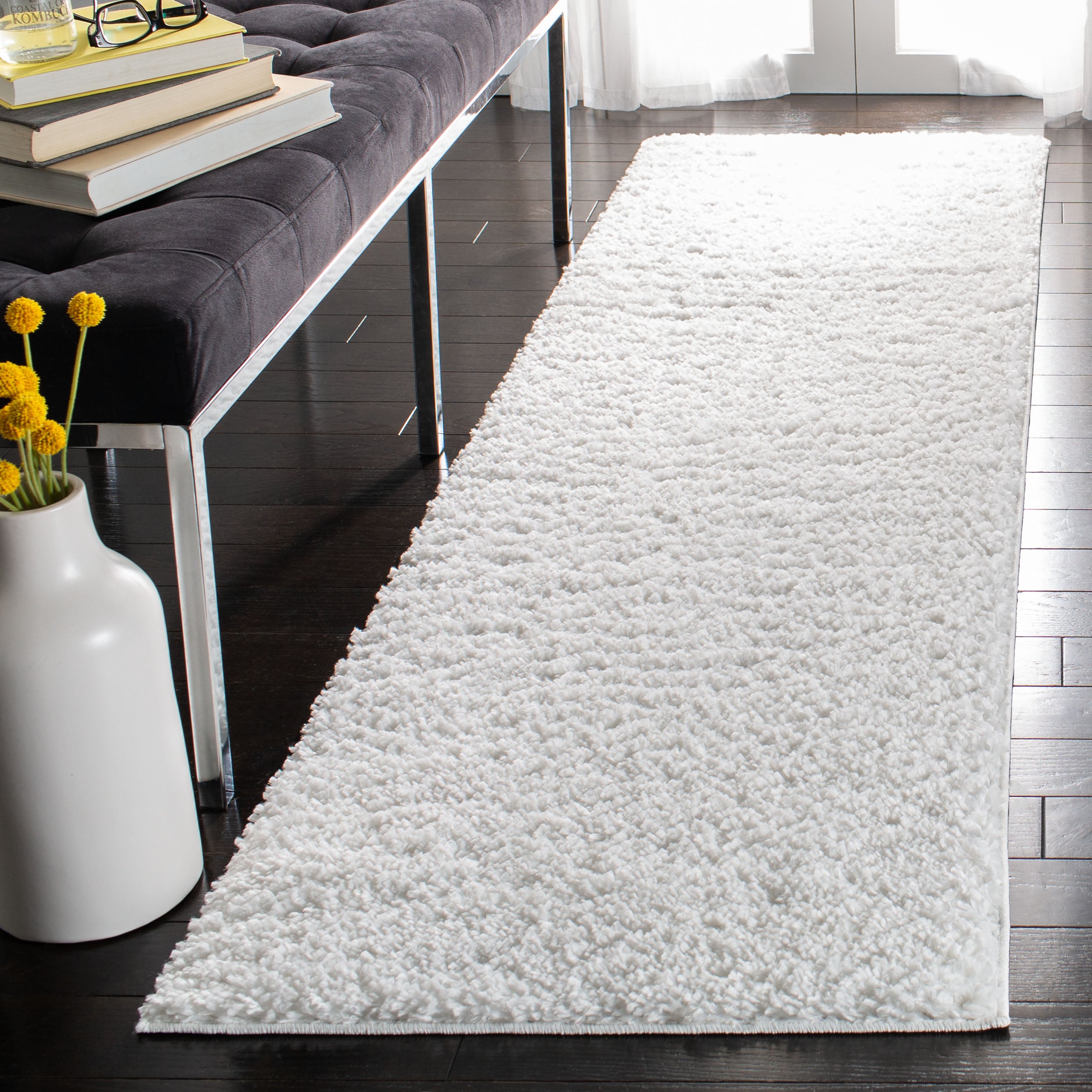 Surround yourself with the fashionable rugs in SAFAVIEH's cozy August Shag Collection, perfect for any room in need of comfort and style. These shag rugs are just the right pile height to contentedly fit underneath the settee or coffee table. Made from enhanced synthetic fibers for easy-care, these rugs are made to withstand high-traffic areas with virtually no shedding. Perfect for the living room, dining room, bedroom, study, home office, nursery, kid's room, or dorm room.