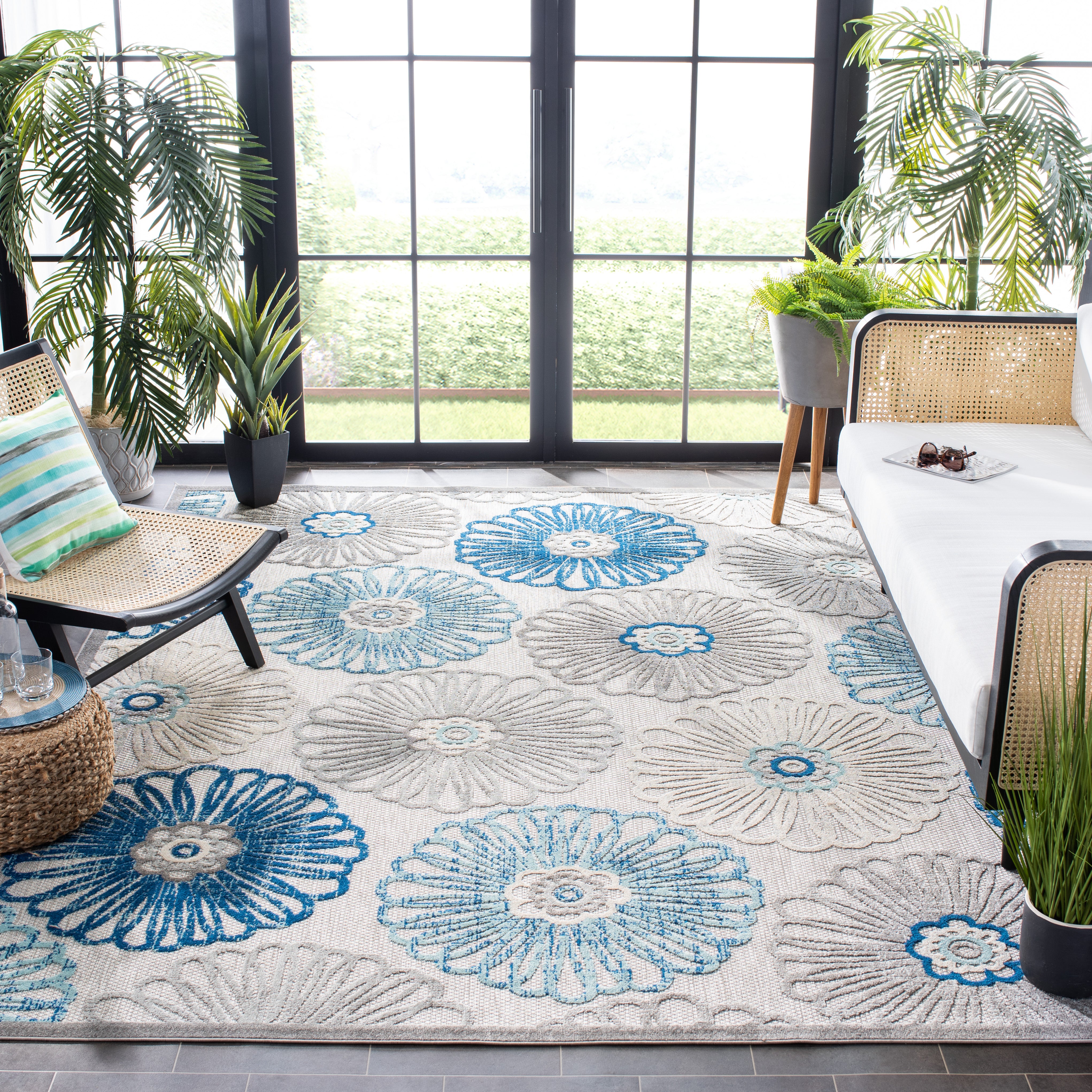Cabana 6'7" X 6'7" Square Gray & Blue Rug