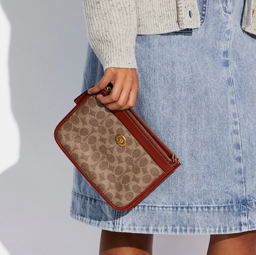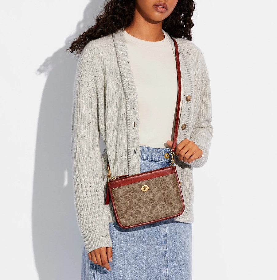 Slim, simple and streamlined, our Turnlock Crossbody is full of function without the bulk. The Signature canvas and refined leather design has two zip pockets for your phone, wallet or keys with an open center compartment for easy access to essentials and a front pocket finished with our iconic turnlock closure.