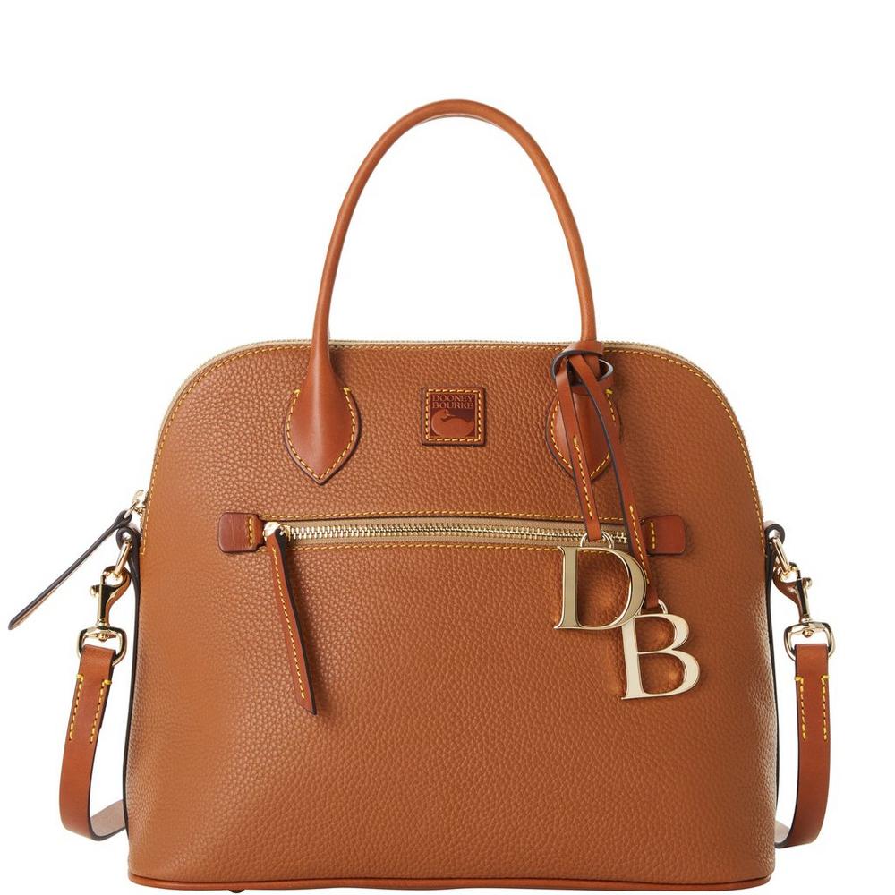 The roomiest of our domed silhouettes, this large satchel purse has sleek curved lines and offers two carry options so you can wear it as a crossbody or carry it by its sturdy top handles. It's crafted from our all-new European pebble grain leather known for its iconic texture, now with a more lightweight and irresistibly buttery feel. Color: Caramel.