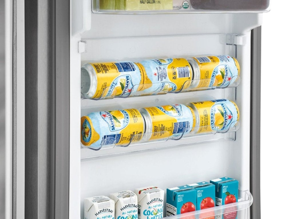 Includes 2 fixed full-width wire shelves, 2 wire baskets, 4 fixed door bins and a space saver shelf to create plenty of space to organize frozen food.