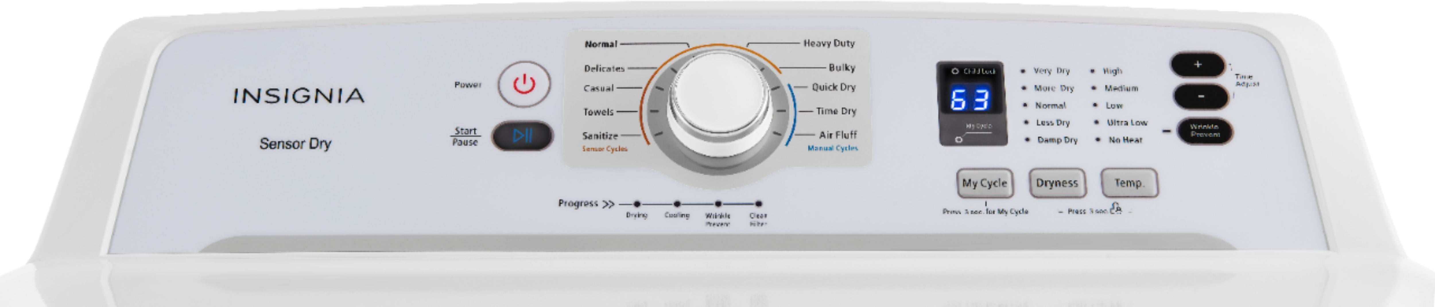 Tumble dry all your family's laundry with this Insignia 7.5 cu. ft. 10-cycle gas dryer. The LED display allows for easy program setting and the front-loading design ensures easy access. Safely dry all linens and garments with 10 different cycles that include delicate heavy duty and normal. The Insignia 7.5 cu. ft. 10-cycle gas dryer has five temperature settings to provide the proper heat and avoid over-drying.