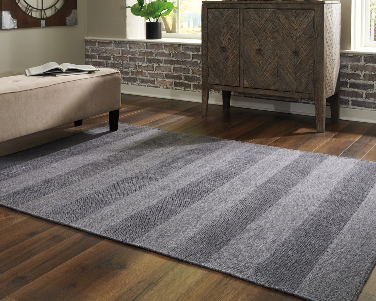 Shades of gray and chic stripes give this area rug a sense of casually cool style. Crafted for indoor-outdoor use, it’s the essence of easy, sophisticated living.