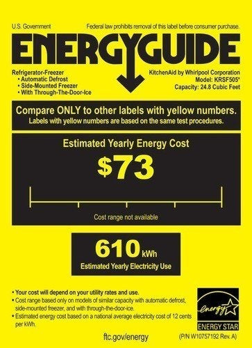 (1) x *KitchenAid 24.8 Cu. Ft. Side-by-Side Refrigerator Stainless Steel |