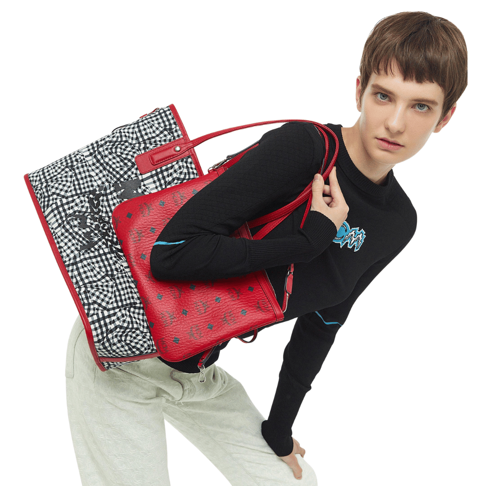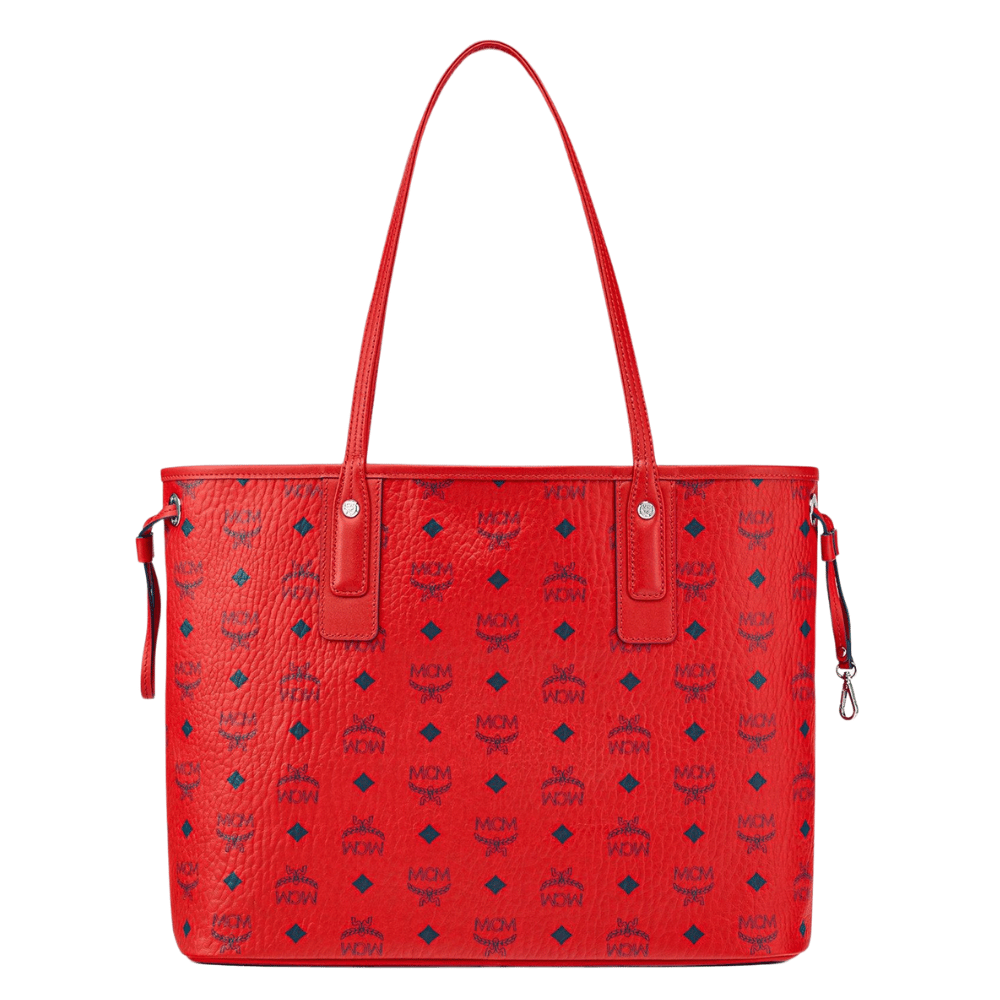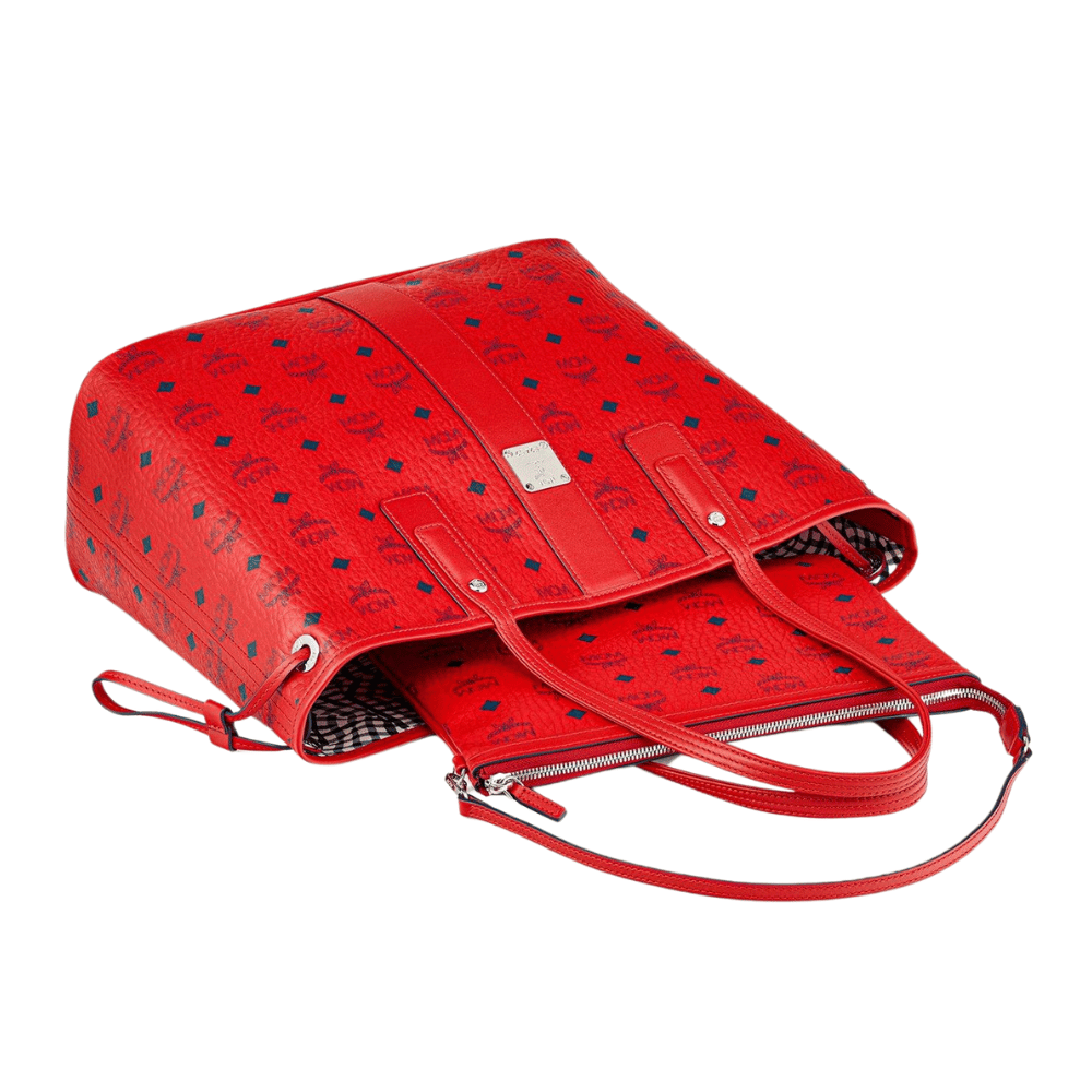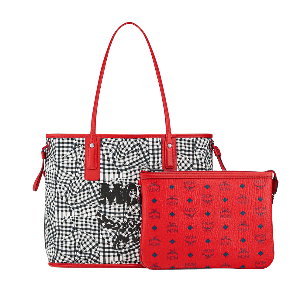 A sweet spin on a passionate colorway, the Candy Red line unifies scarlet Visetos and nappa leather on this luscious rendition of the Liz shopper. Featuring a lightweight silhouette adjusted through leather side drawstrings, the everyday companion can be reversed to show off the interior optic check pattern. Greater versatility arrives in the form of a removable zip pouch, which thrives as a standalone purse for minimalist occasions.Features: