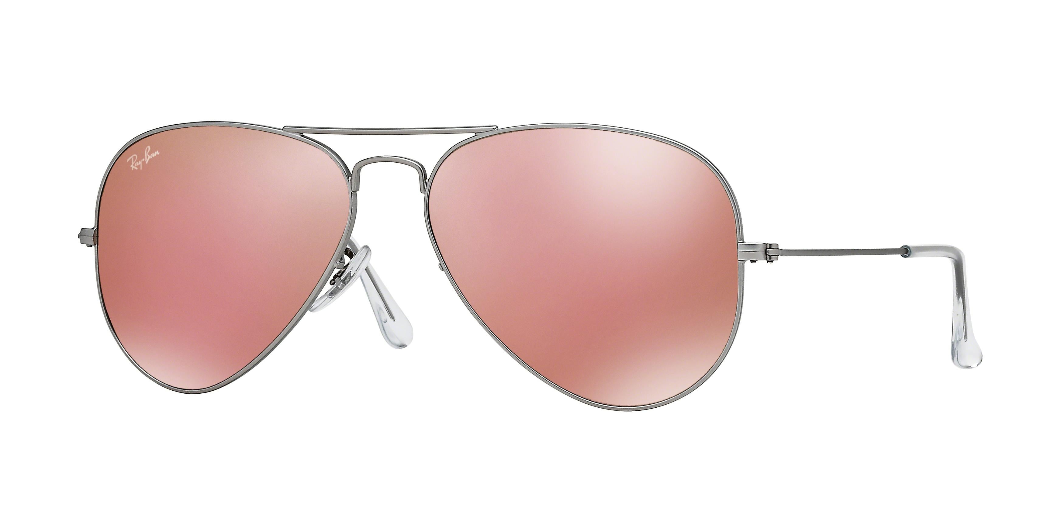 Matte Silver Frame. Copper Pink Flash Lenses. 100% UV Protection. Includes Ray-Ban sunglass case, gift box, and cleaning cloth. Eye/Bridge/Temple: 58/14/135.