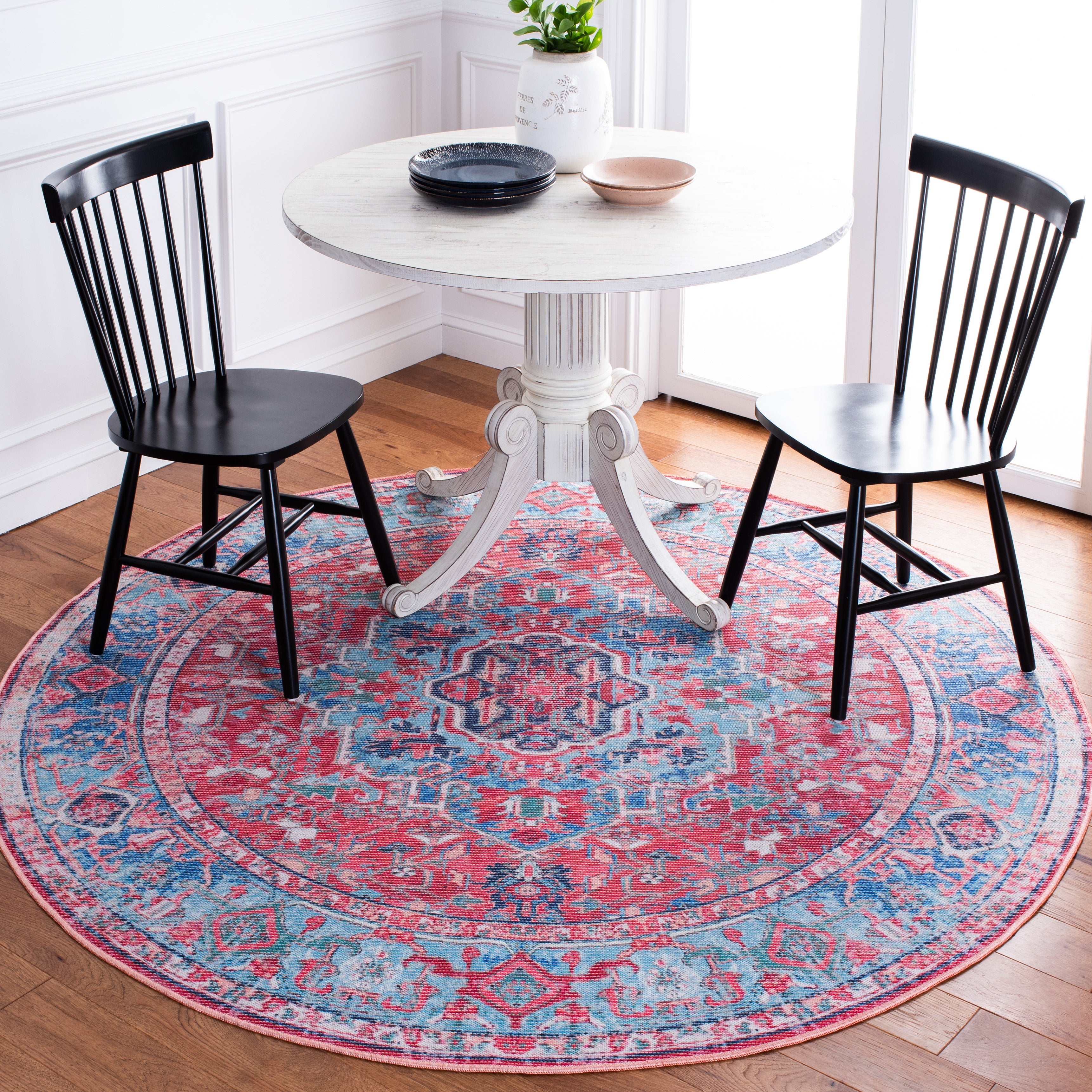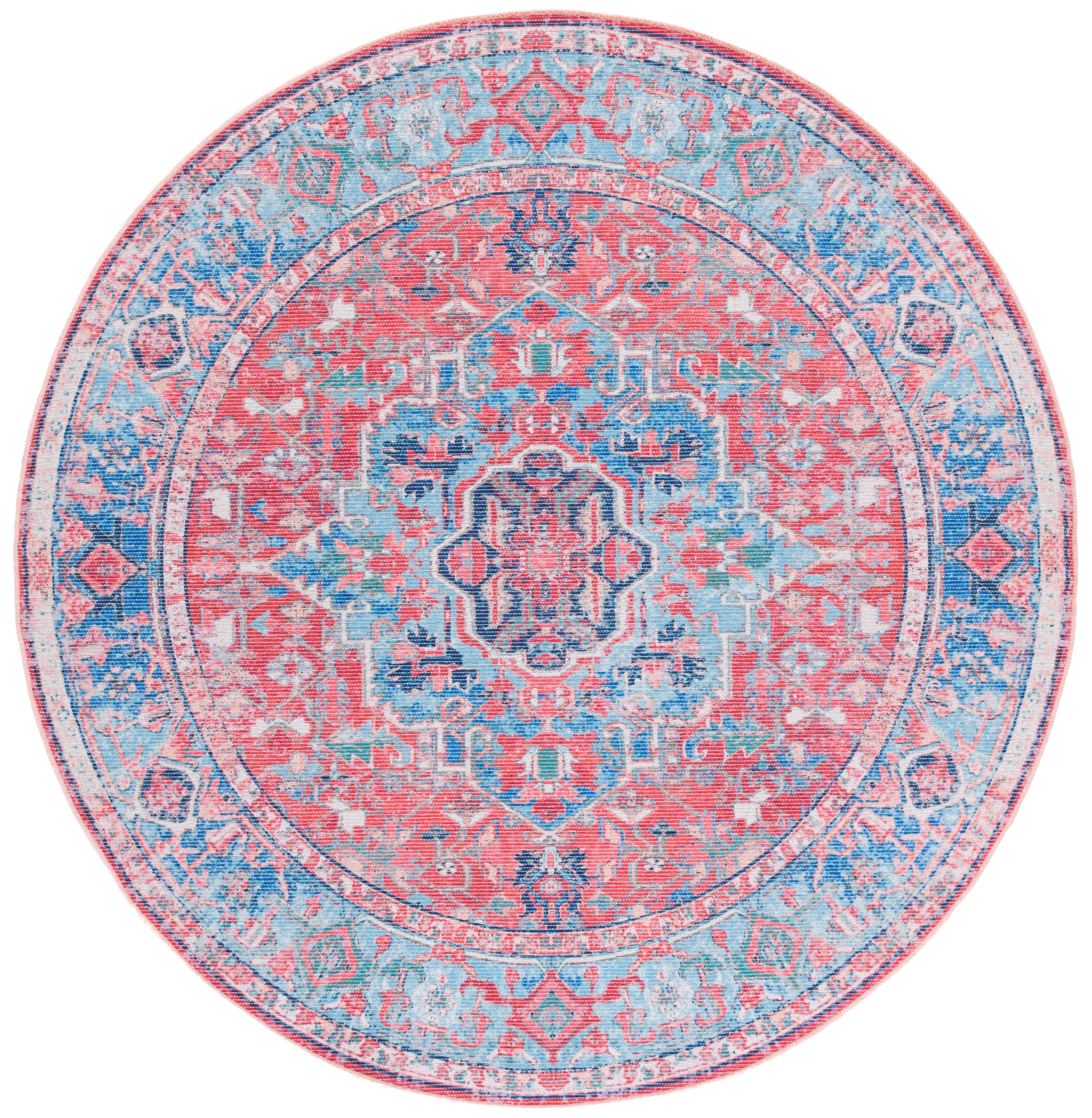 Safavieh SEP518 Serapi Light Blue & Red 6'-7" X 6'-7" Round Rug
