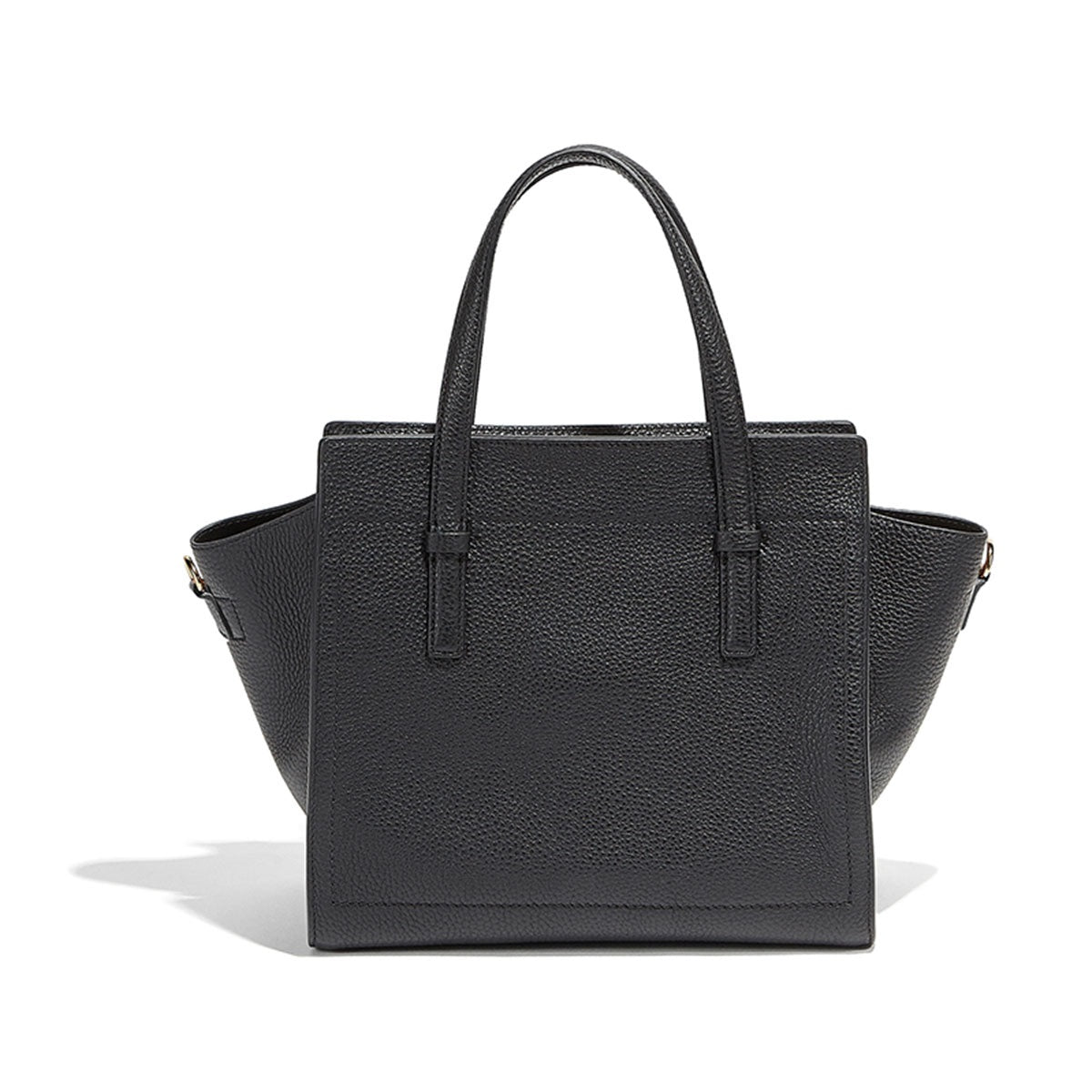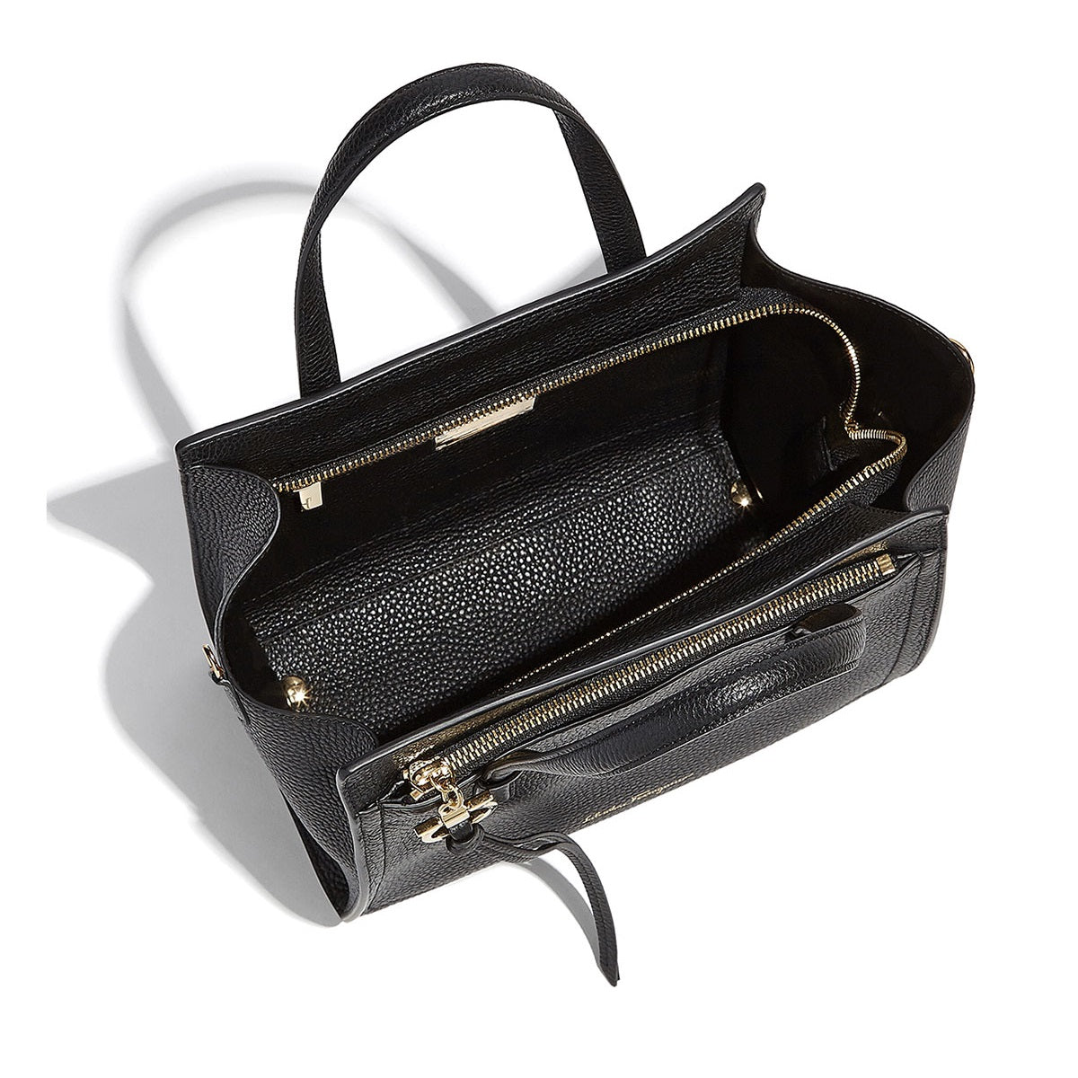 Sumptuous materials and geometric lines create the perfect blend of stylish simplicity. This mini tote with its squared shape is made of calfskin leather with a natural grain and an extremely rich finish. The zip closure reveals a leather lined interior, while the pocket on the front dial is decorated with a Gancini zip and puller with a patent insert. Carry by hand or wear cross body using the handy removable shoulder strap. Double handles, detachable crossbody strap.