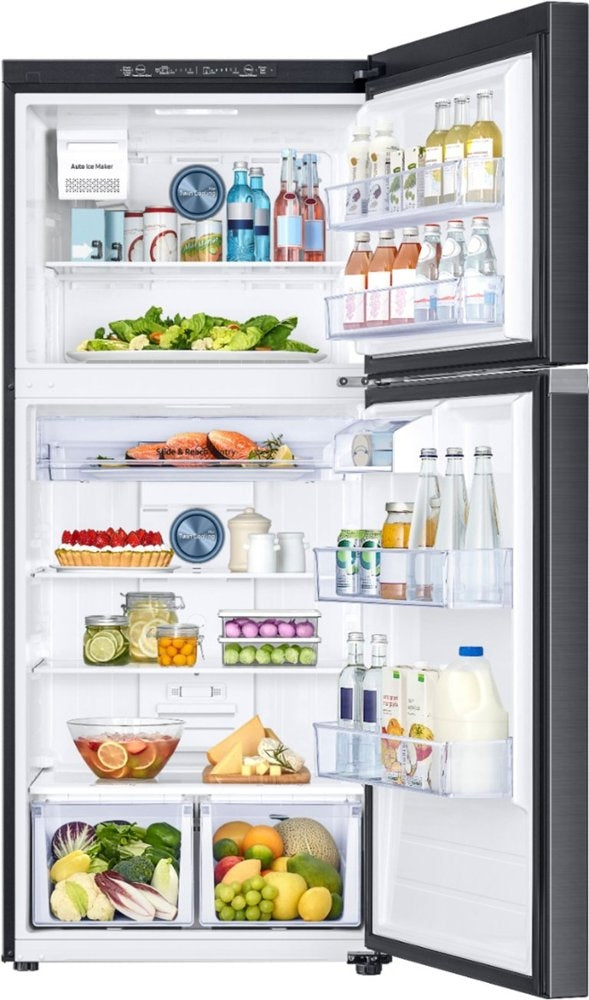 (1) x *Samsung - 17.6 Cu. Ft. Top-Freezer Fingerprint Resistant Refrigerator - Black stainless steel |