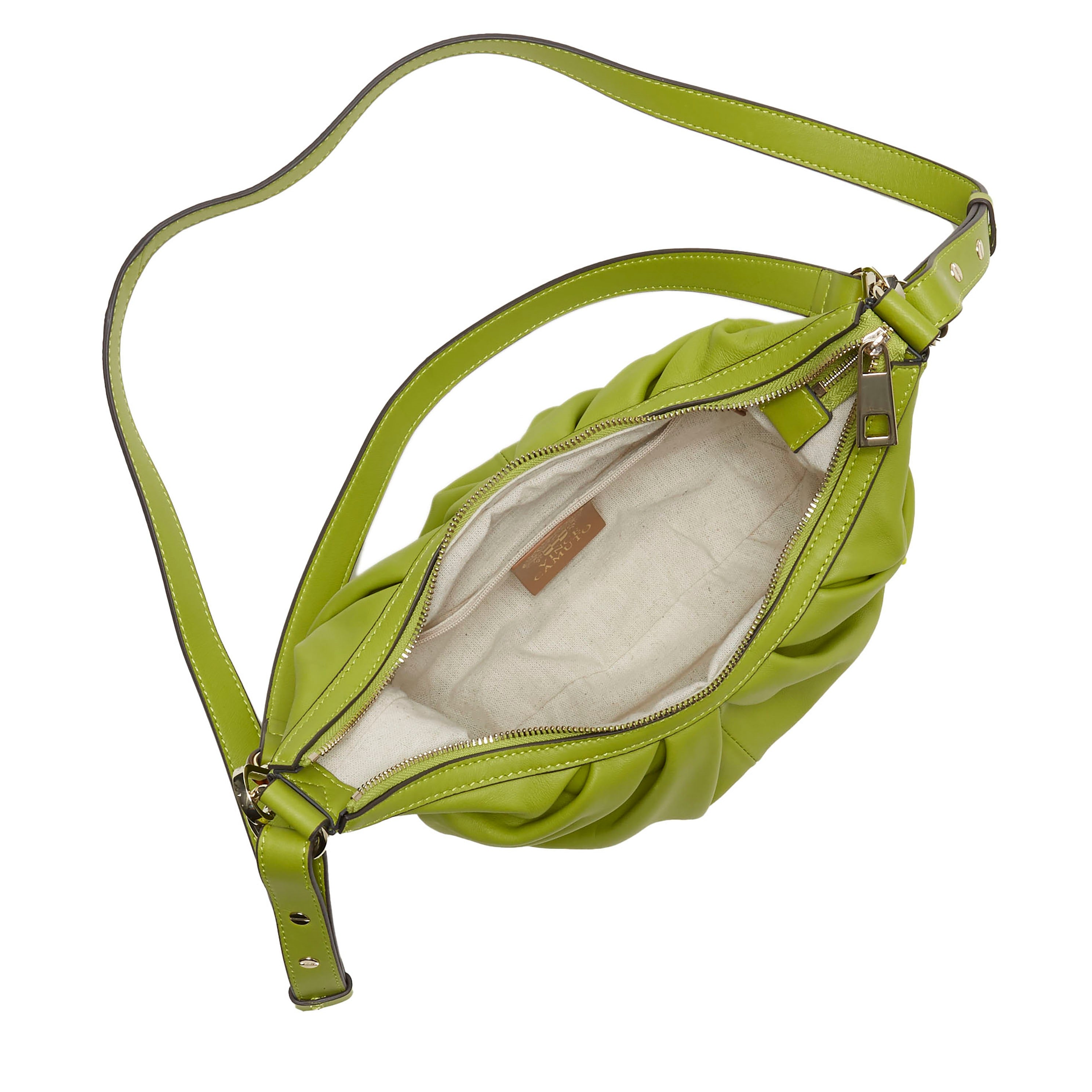 The Sidni Handbag features, three adjustable functions for how you see fit! Can be worn across the body, over the shoulder and in your hand for a true fashion statement. Interior details include a zip-close back wall pocket and a media pocket organization. Handbag easily closes with a metal zipper running across the top edge and showcase ruching detail front and center. Smooth leather crossbody with top handle, removable and adjustable straps.