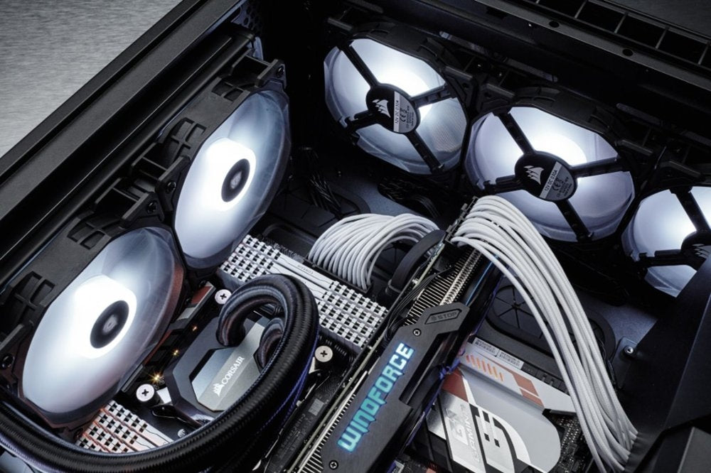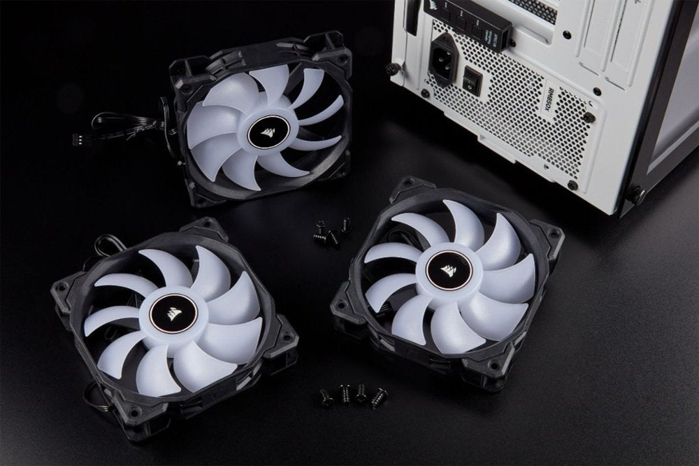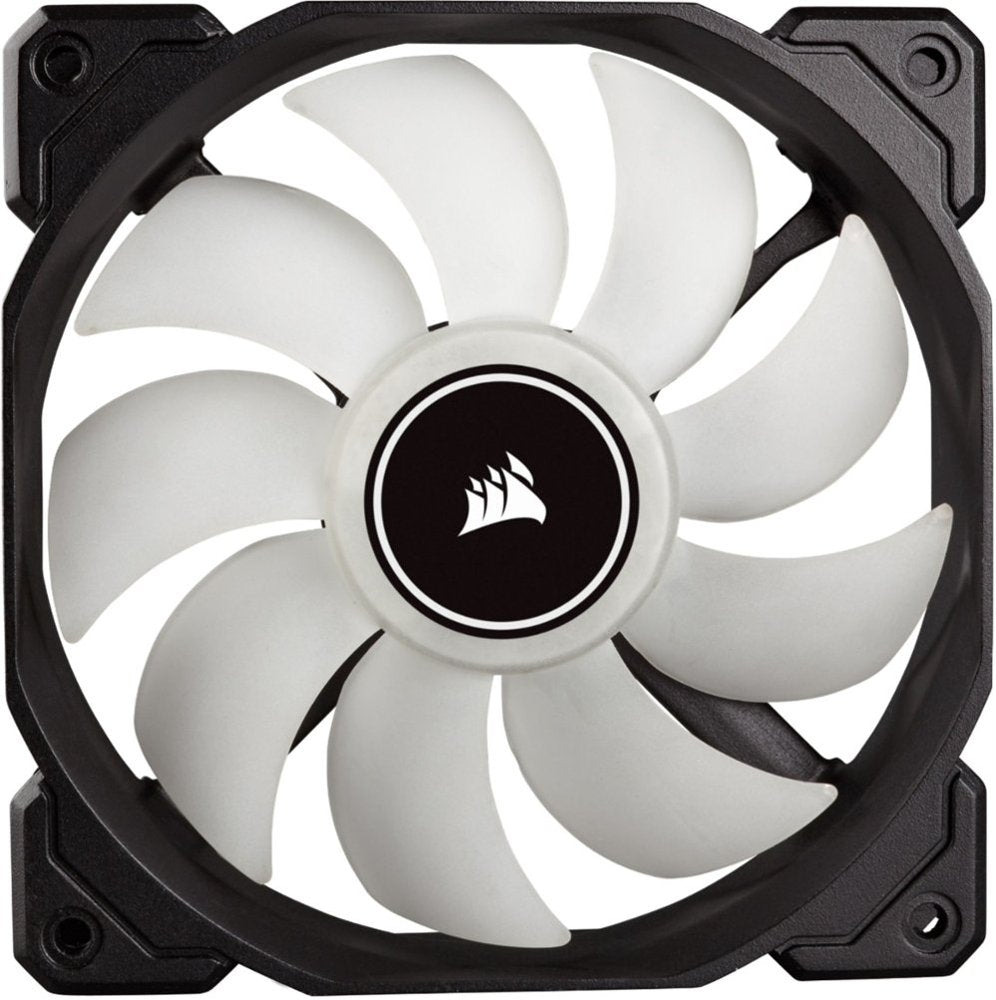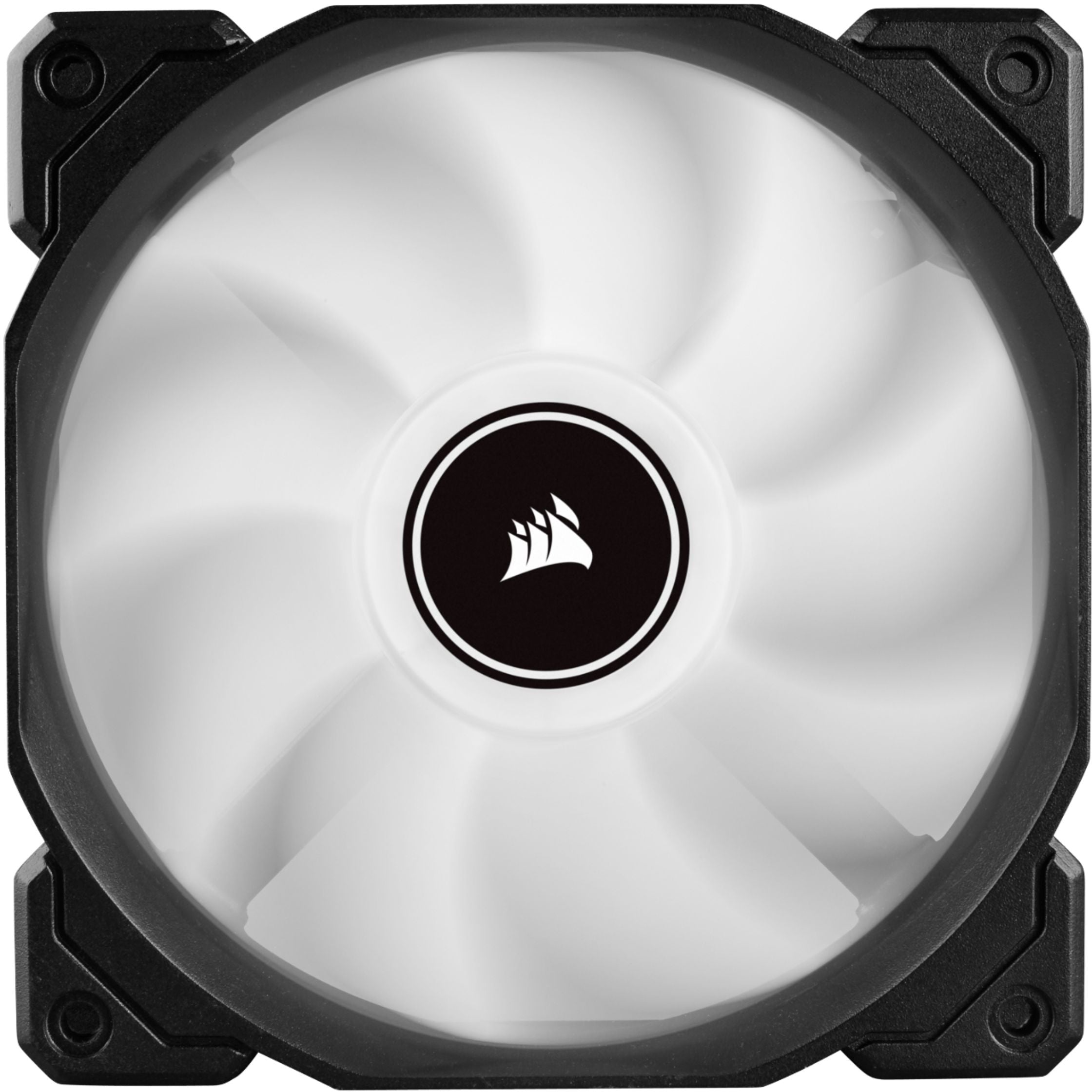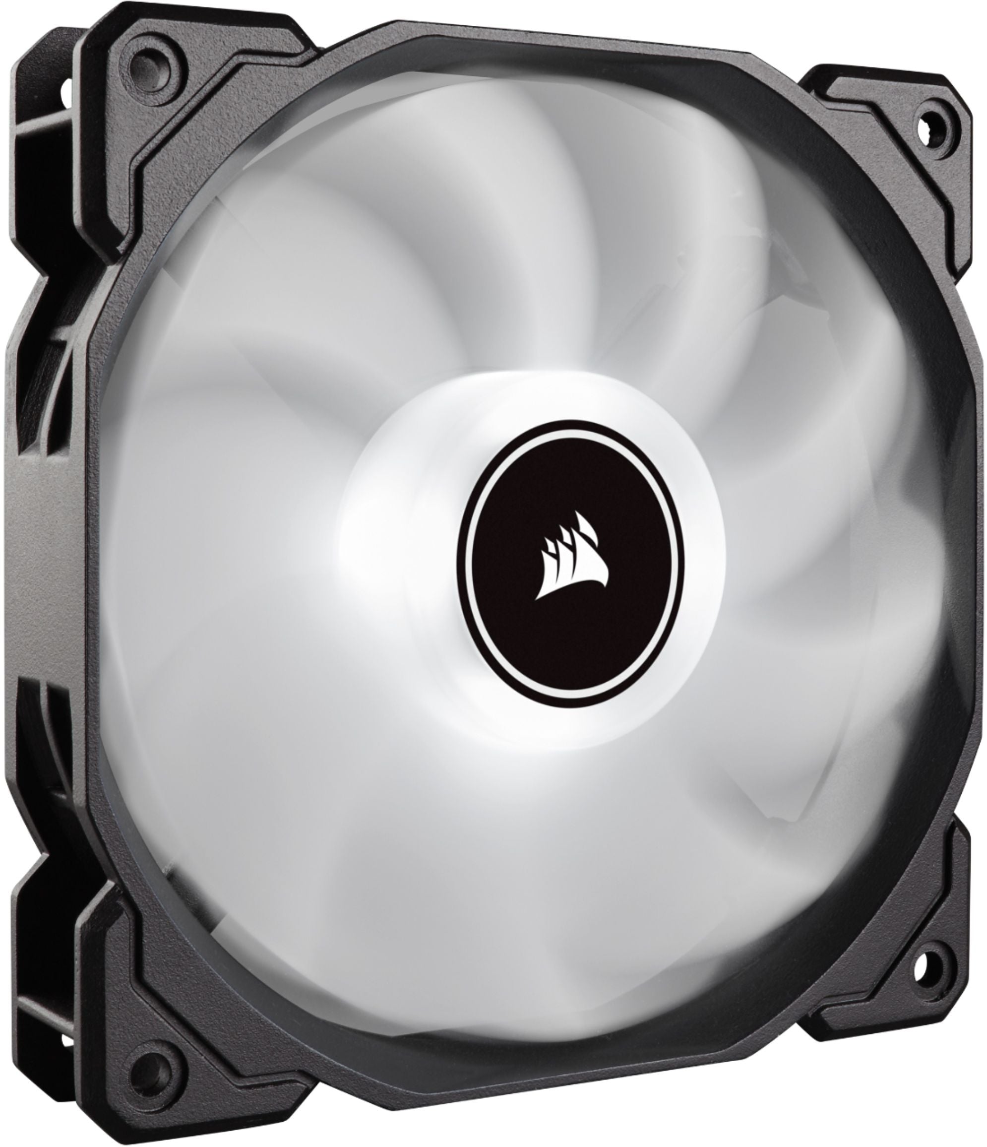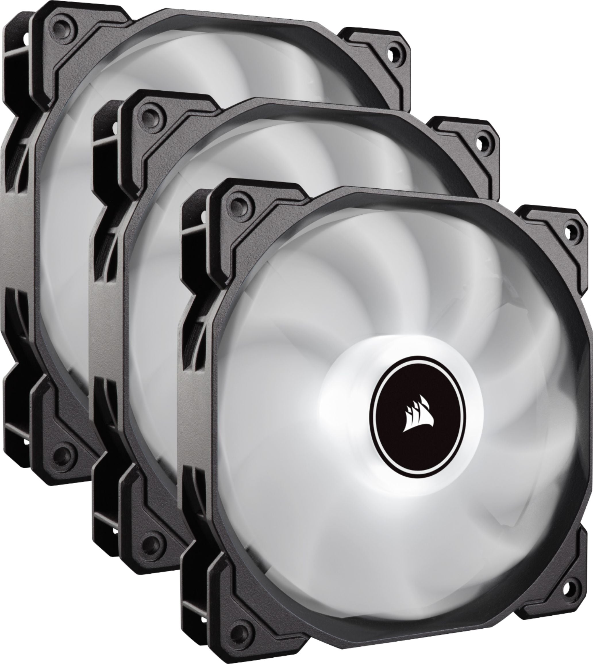 Protect your computer's circuitry with this triple-pack of Corsair Air Series LED fans. Cool computer internals effectively with up to 52 CFM of airflow while a hydraulic bearing and special fan blade ensure quiet performance. Light from each unit in this triple-pack of Corsair Air Series LED fans is diffused by rotating blades for a refined appearance.