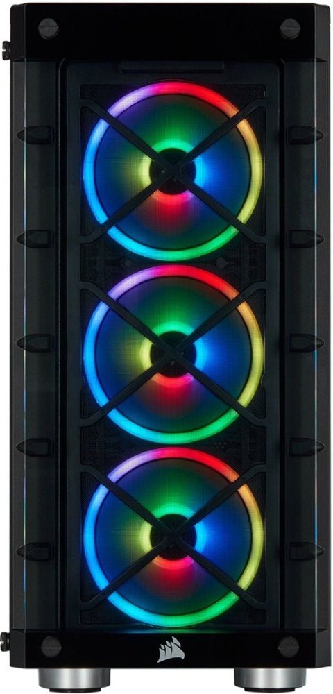 Build a PC with this Corsair iCUE ATX mid-tower smart case. The expandable fan installation design and airflow layout reduce the risk of overheating while multiple drive bays accommodate hard drives and SSDs for flexible storage options. This Corsair iCUE ATX mid-tower smart case features tempered glass side panels to showcase the components.