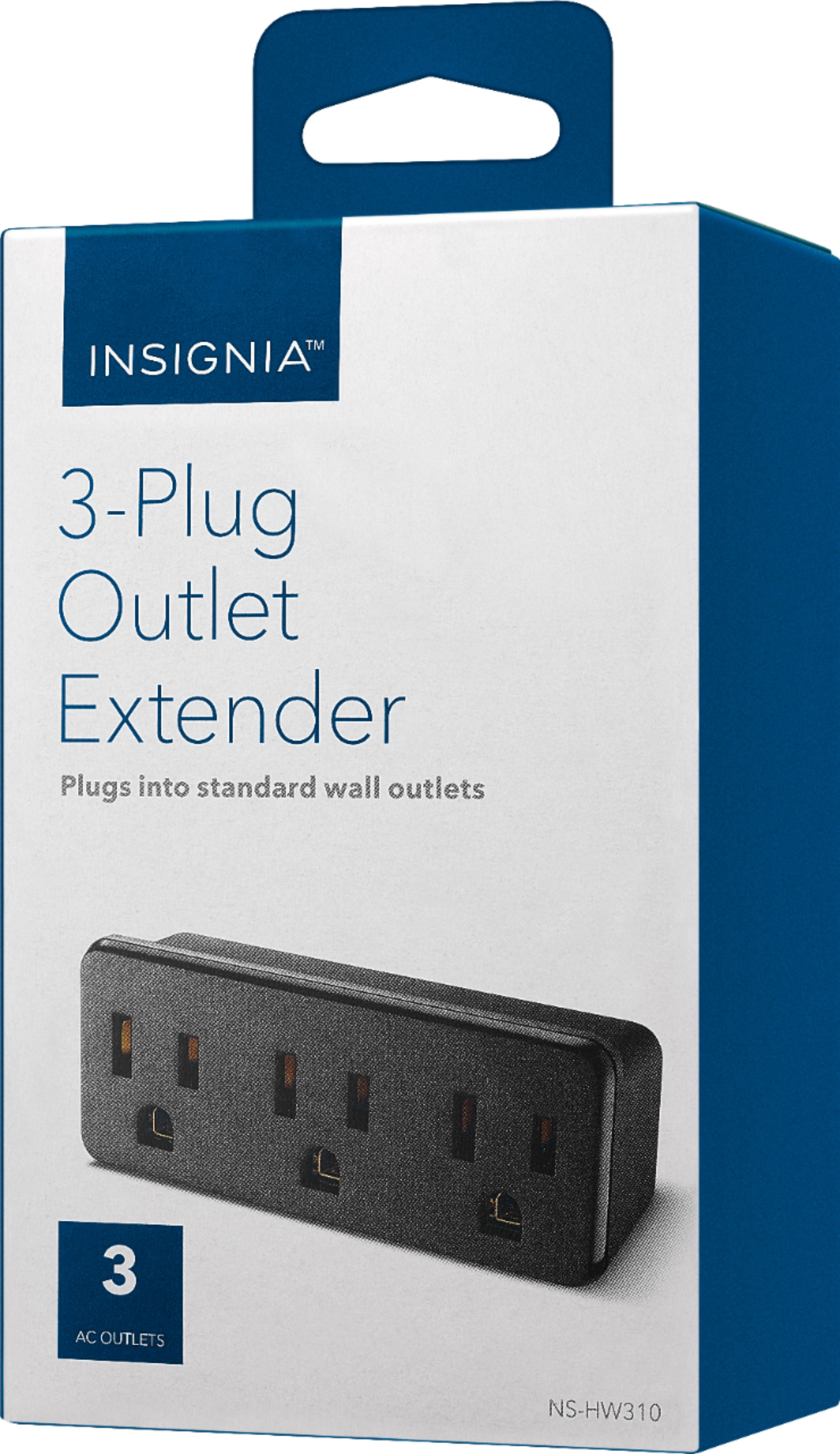 Maximize your power outlet use with this Insignia three-plug wall adapter. The grounded adapter works with a variety of electronics plugs, offering sturdy seating that resists disconnection. This Insignia three-plug wall adapter offers wide-spaced outlets to easily accommodate a variety of plug sizes, and the lengthwise design doesn't impede on dual-outlet wall plates.