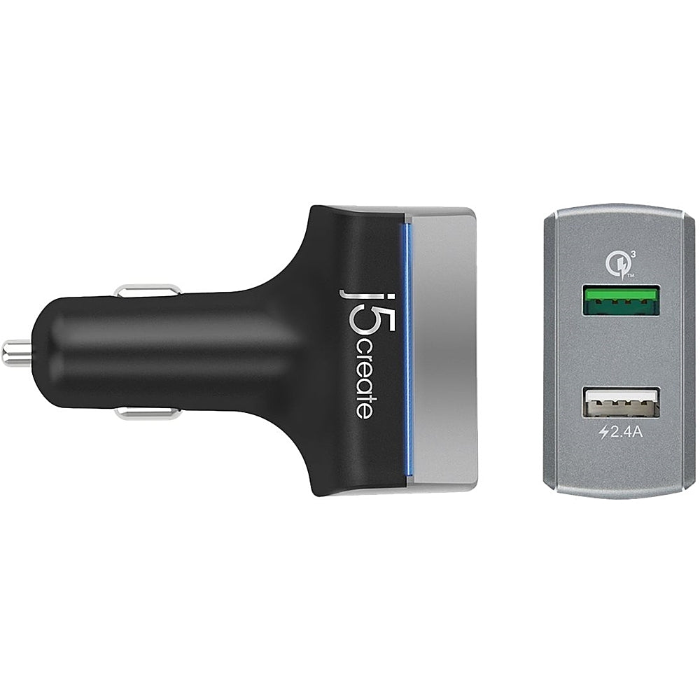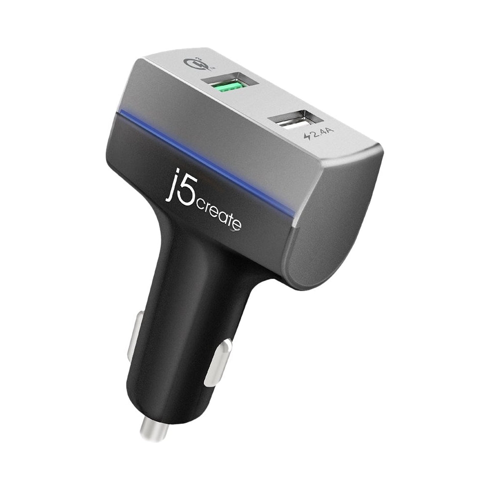 Recharge two digital devices simultaneously while driving with this j5create car charger. One port uses Qualcomm Quick Charge 3.0 technology to power compatible devices four times faster than a standard charger, and the standard USB port charges at up to 2.4A. This j5create car charger has surge protection to prevent overheating and over-charging .Compatible with most USB-enabled devices to include the new iPhone 12 and iPhone 12 Mini.