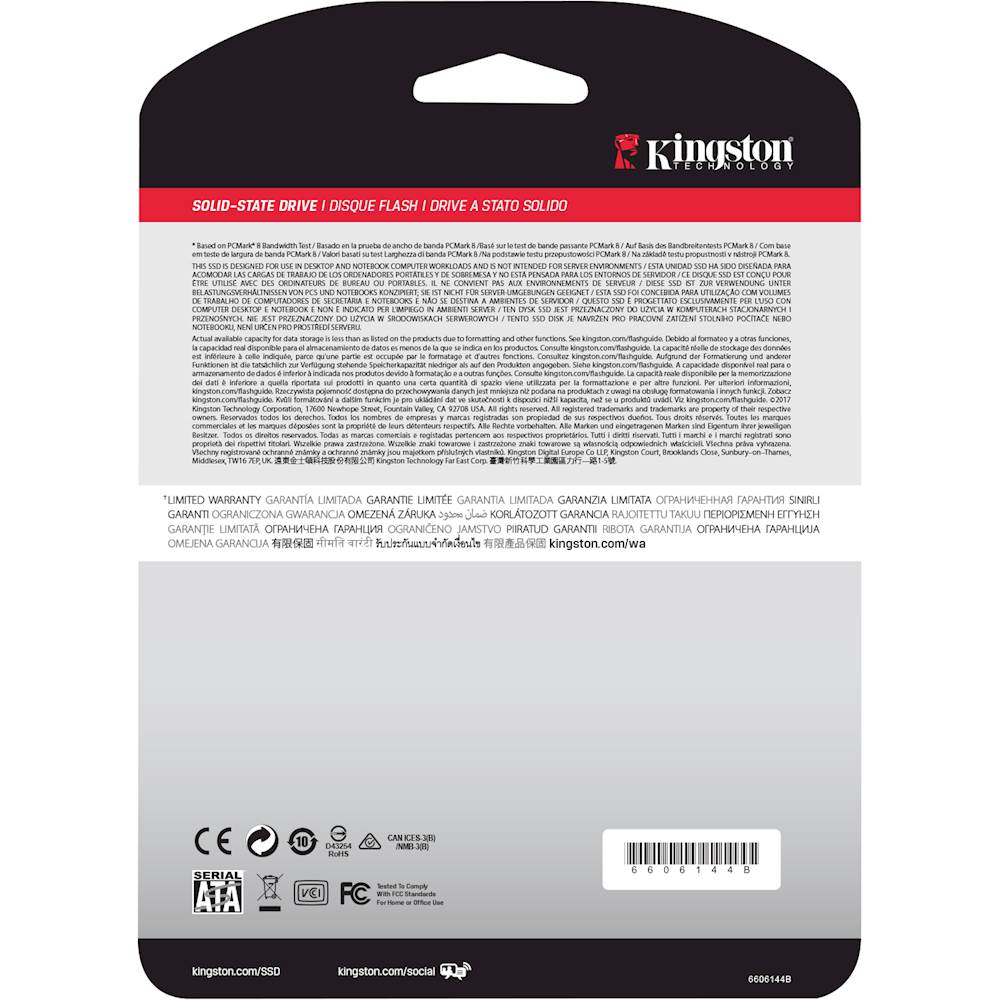 Boost the data storage speed and capacity of your desktop or laptop computer with this Kingston solid-state drive. It has read and write speeds 10 times greater than a standard hard drive to increase multitasking speed. This Kingston solid-state drive has no moving parts and resists shock and vibration for dependable performance.