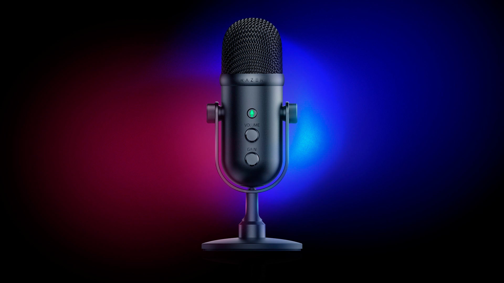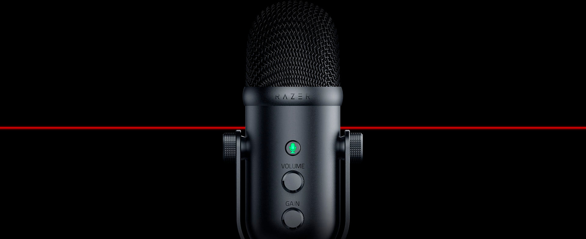 Gain Control and Mute ButtonAdjust the Razer Seiren V2 Pro’s general audio settings quickly and easily thanks to a set of easy-access volume, mic gain, and mic mute buttons located on the mic itself.