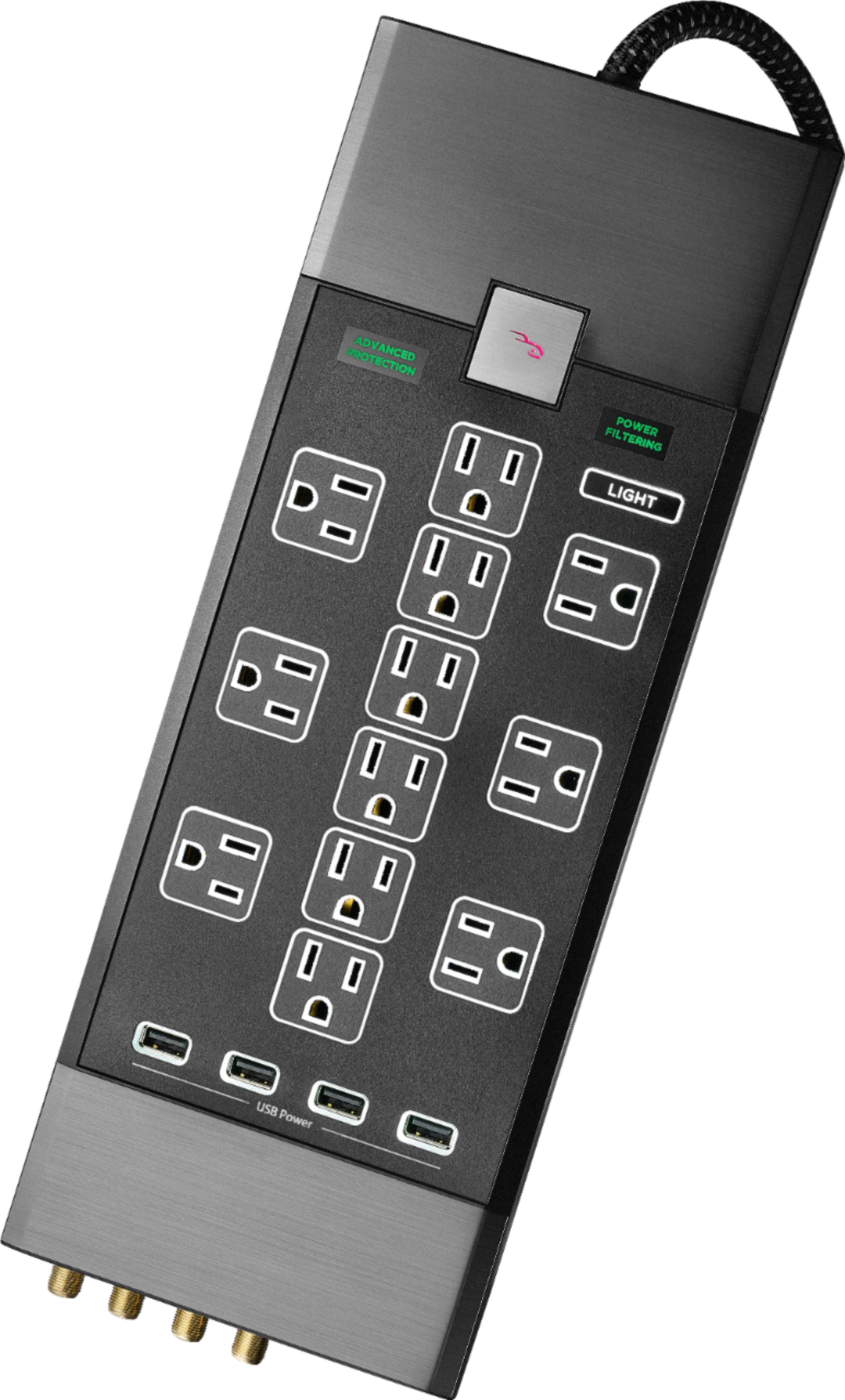 Operate your home theater system with this 12-outlet Rocketfish power center. It provides ample surge protection for premium components and it has four onboard USB ports to charge portable devices. Connect this Rocketfish