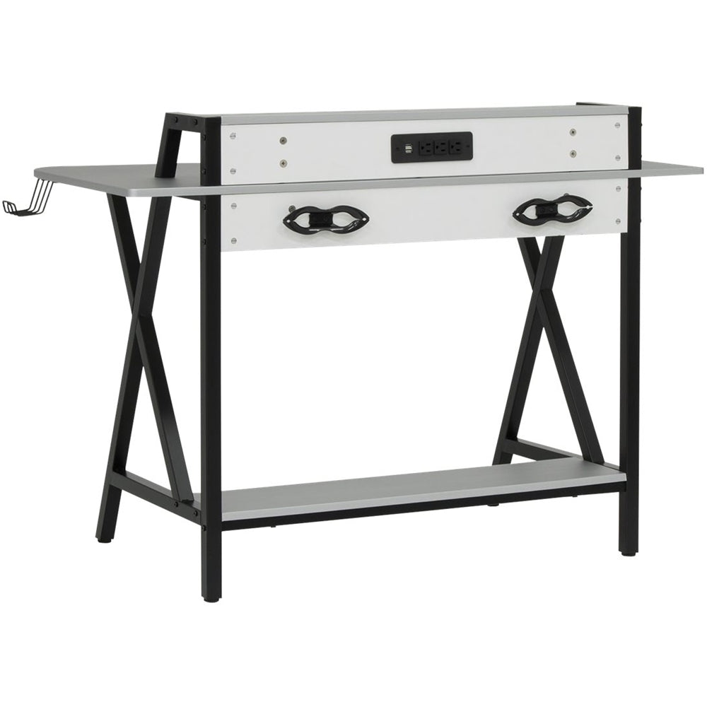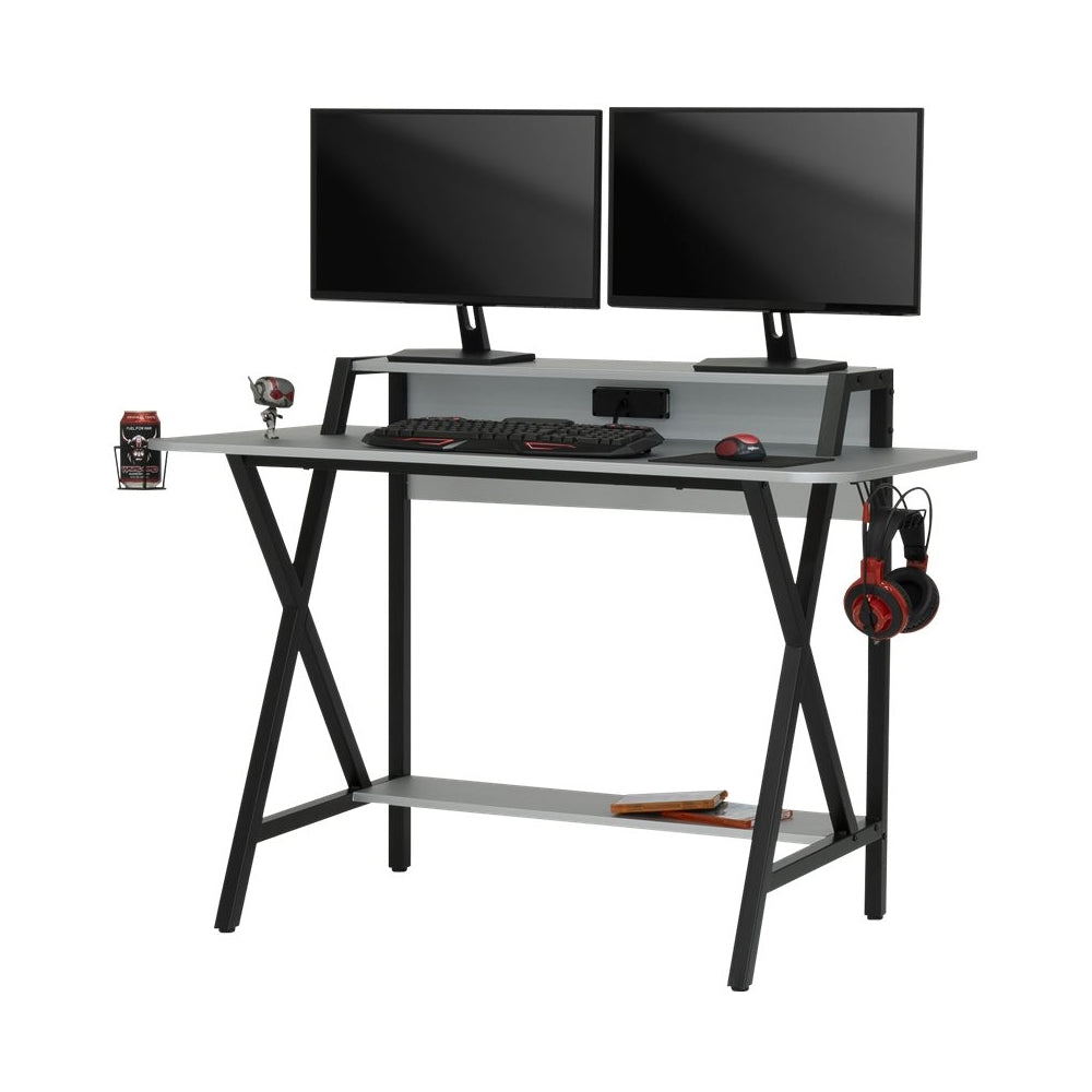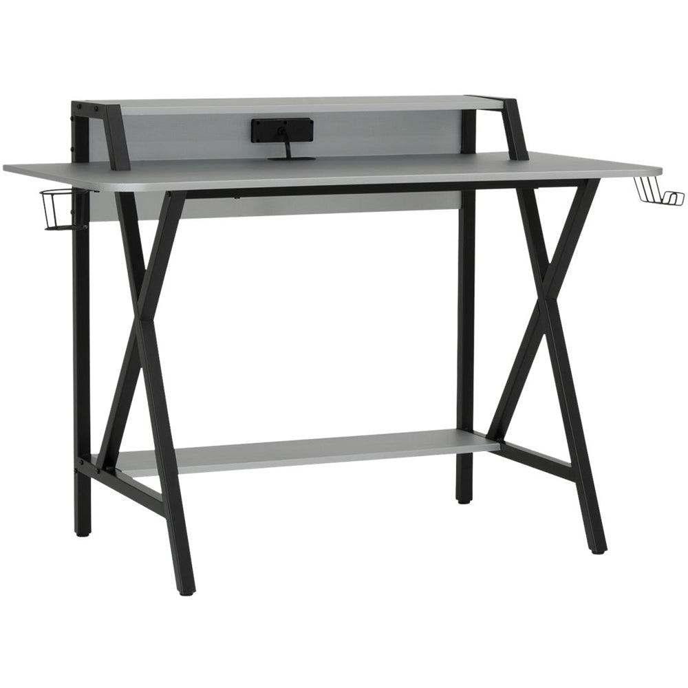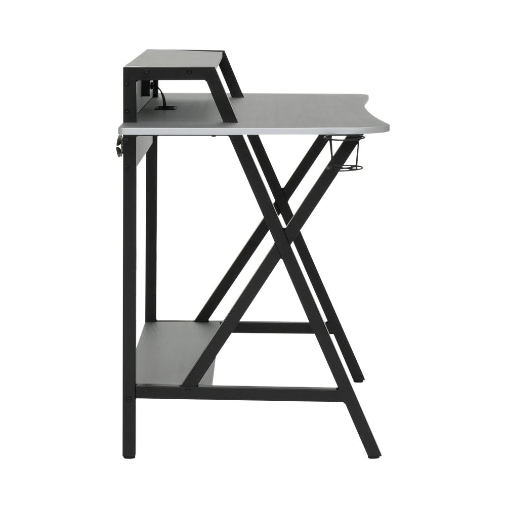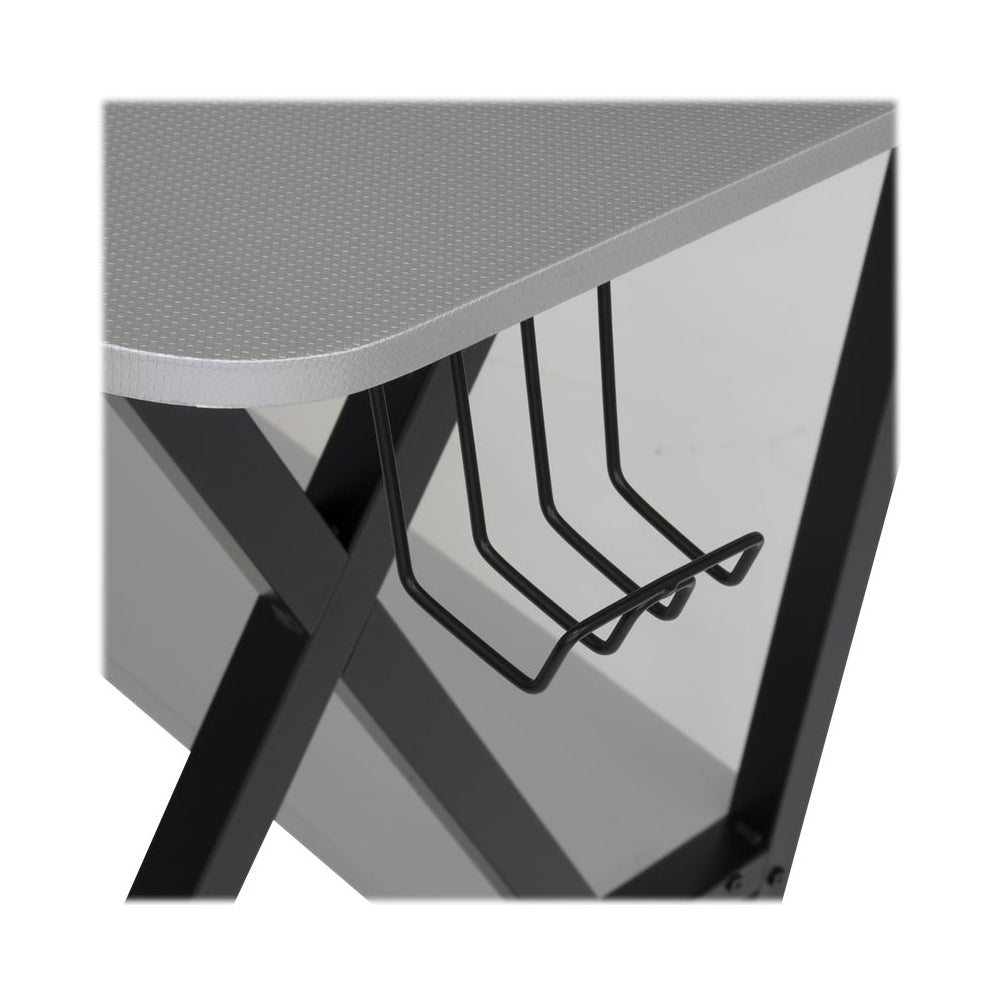 Compete on the battlefield with this SD Gaming Challenger PC Gamer Desk. A cord management hole organizes cables, while a back panel and floor levelers provide reliable support. A cup holder and headphone holder keep your tabletop clear. This SD Gaming Challenger PC computer desk has a powder-coated steel frame and a tough laminated top.