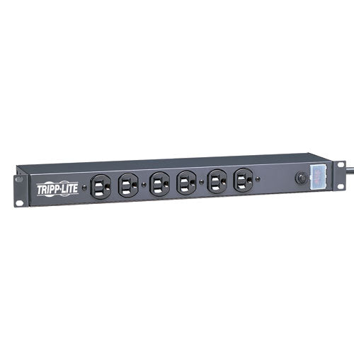 Tripp Lite's RS-1215 Power Strip offers 15 amp capacity AC power distribution in a versatile multi-mount cabinet. Detachable mounting flanges are configurable for rackmount, wallmount and under-counter installation. Uses only 1 rack space (1U) when installed in any 19 inch rack meeting EIA standards. Unfiltered electrical pass-through makes RS-1215 ideal for distributing alternate waveform UPS or generator power in rack enclosures, network closets and more. Includes 12 NEMA5-15R outlets (6 front/6 rear), 15 ft AC power cord and lighted switch with cover prevents risk of accidental turn-off.PLUG/OUTLETS: Input: NEMA 5-15P. Output: 12 NEMA5-15R (6 front & 6 rear)ELECTRICAL: 120V AC, 50/60Hz, 15A (Requires standard NEMA 5-15R wall receptacle)FORMAT: Supports 19 in. rackmount (uses 1 rack space/1U), wallmount, under-counter and more