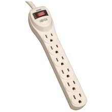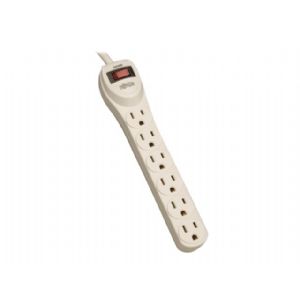 The Waber-by-Tripp Lite PS6 Power Strip offers a convenient method of power distribution in workbench, wallmount or floor mount applications. Includes 6 NEMA 5-15R output receptacles, 4-ft. AC line cord and keyhole mounting tabs for installation in a wide variety of applications. Corded, multi-outlet strip reduces cabling clutter and enables the connection of multiple electrical devices to a single AC wall socket. Unfiltered electrical pass-through makes the PS6 ideal for distributing alternate waveform UPS or generator power. Features power switch, circuit breaker and attractive gray color scheme. Lifetime warranty.PLUG/OUTLETS - Input: NEMA 5-15P/Output: 6 NEMA 5-15RELECTRICAL - 120VAC, 50/60Hz, 15A (Requires standard NEMA 5-15R wall receptacle)FORMAT - Corded power distribution strip