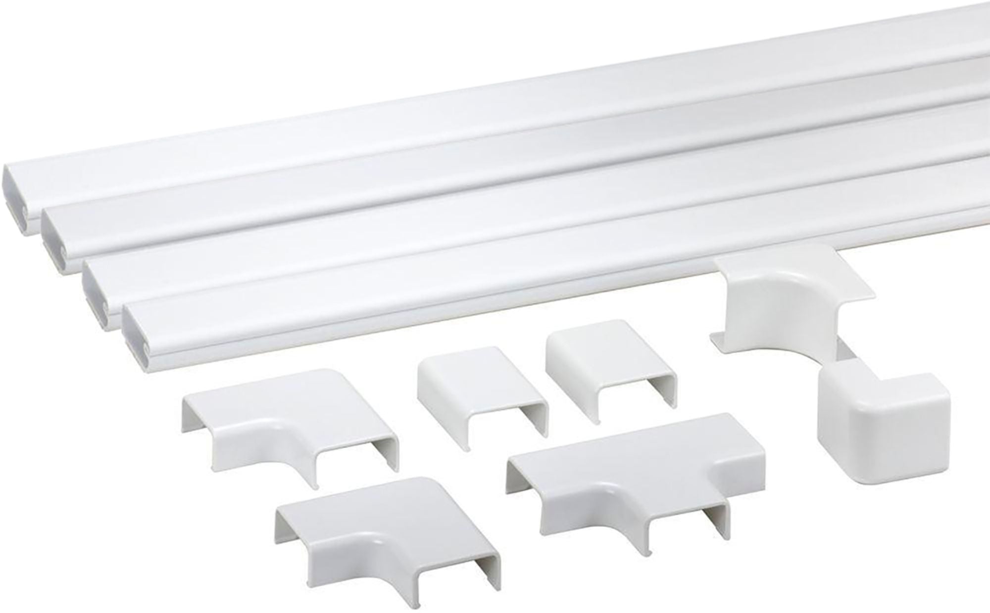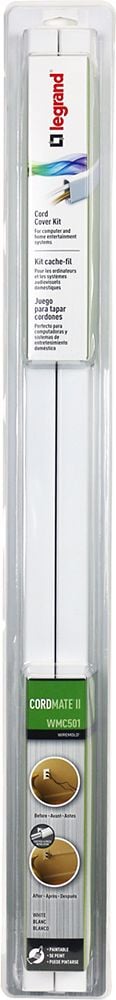Hide the wires of your electronics using this Wiremold CordMate II WMC501 cord cover kit, which includes snap-on fittings and features simple peel-and-press installation. Paint the covers to match your d
