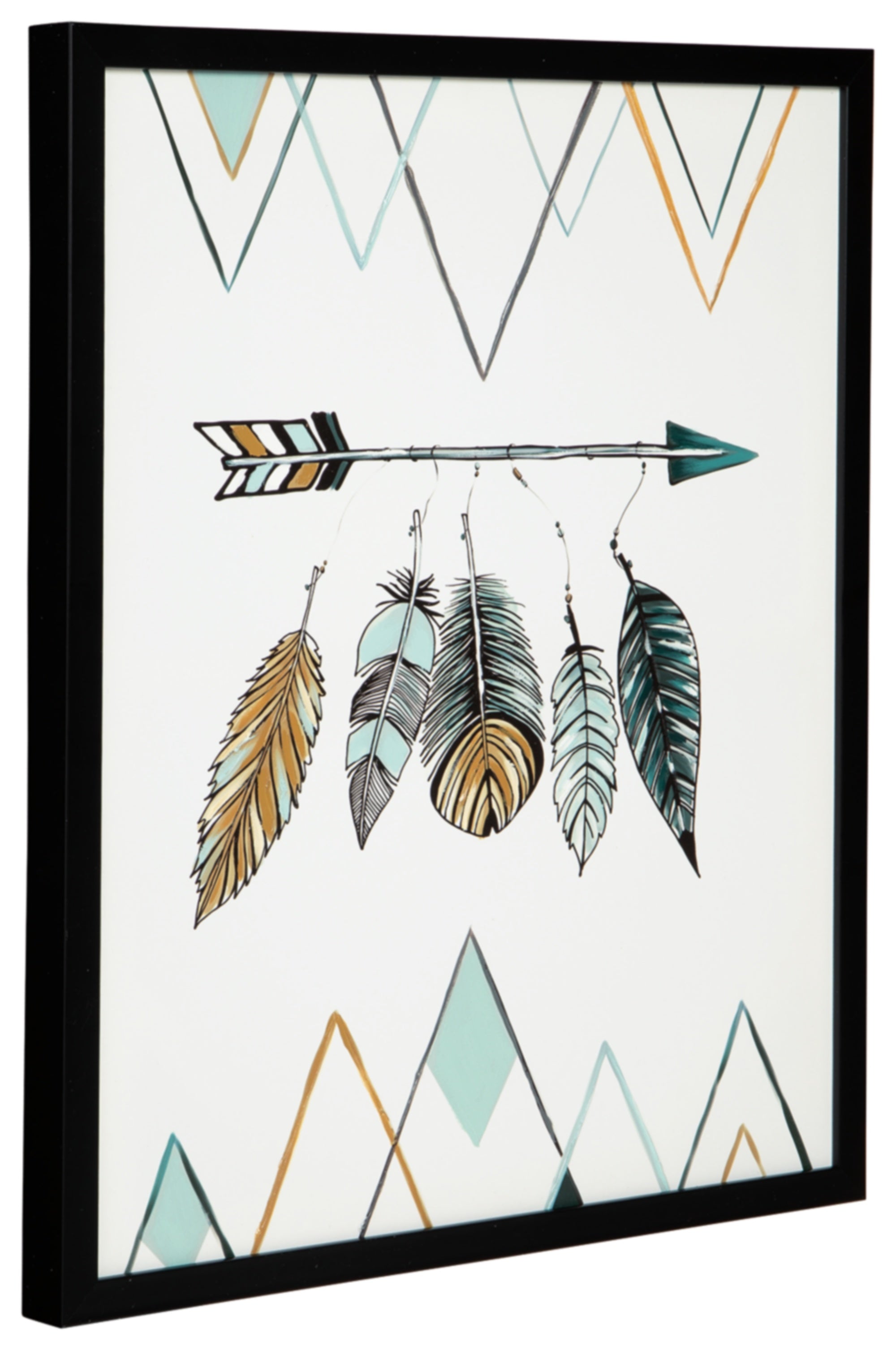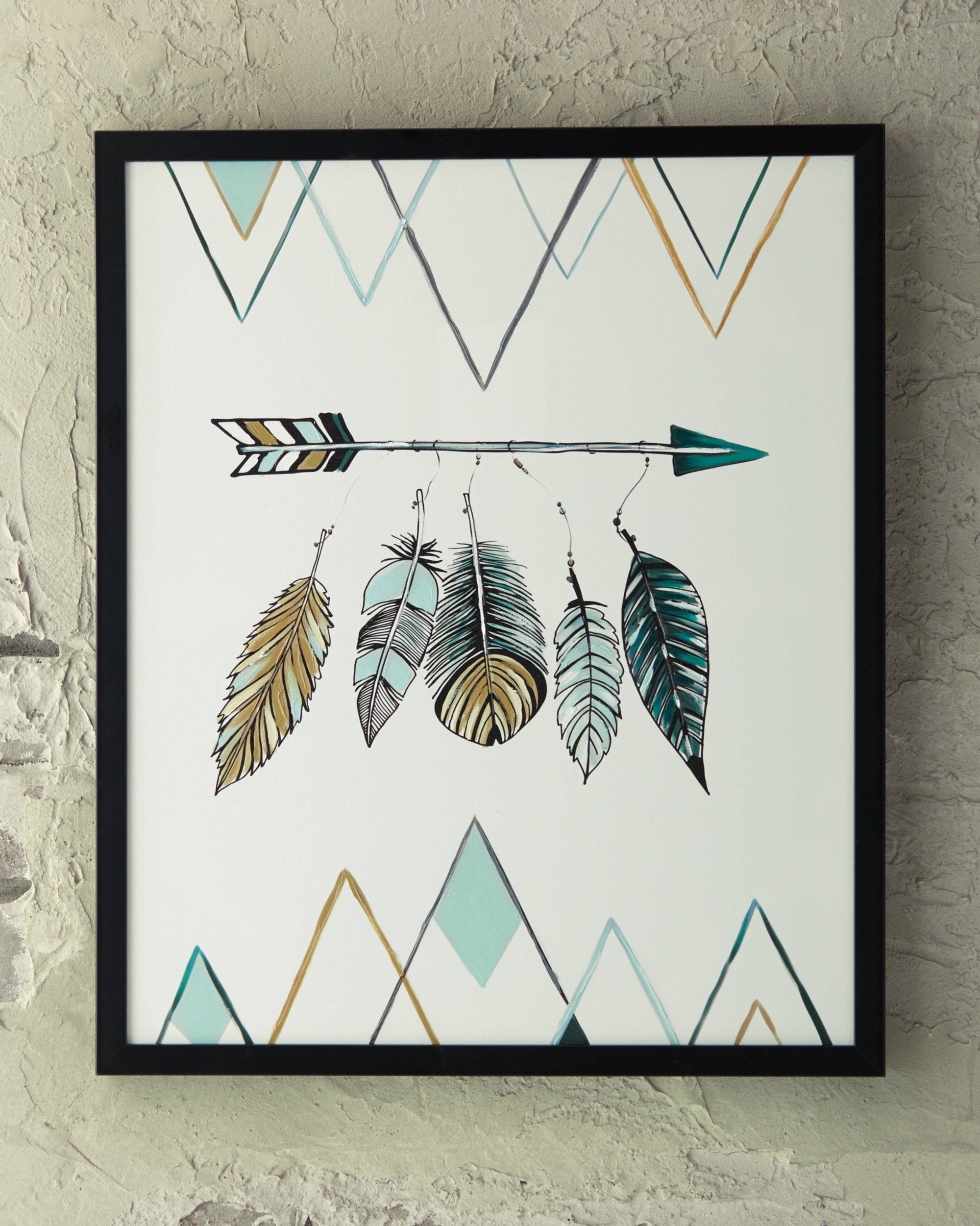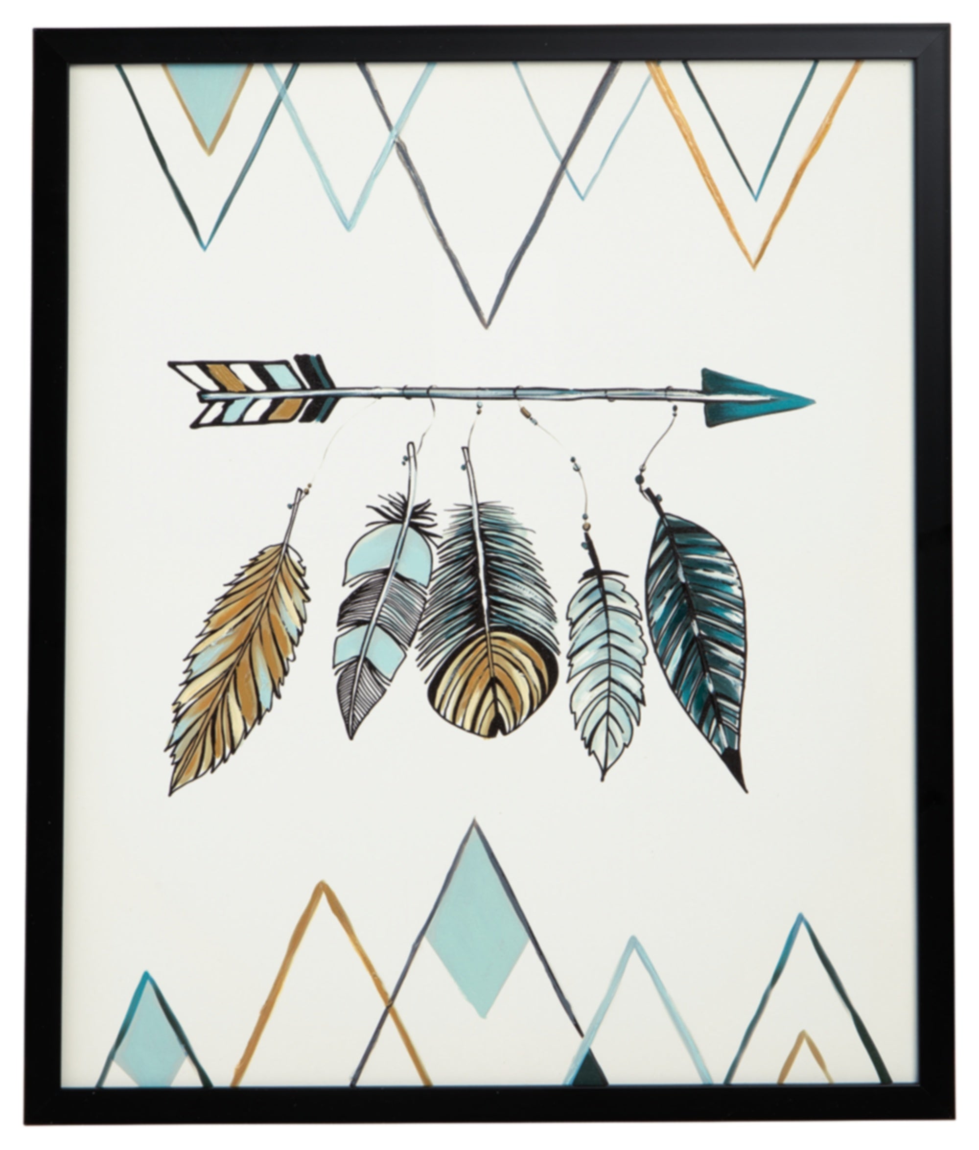 Add a pop of pattern and color with this eye-catching, hand painted embellished feather and arrow design. The Adaley wall art features dynamic colors in teal, gray and gold. Framed in gallery wrapped canvas, this wall art is sure to make a statement.
