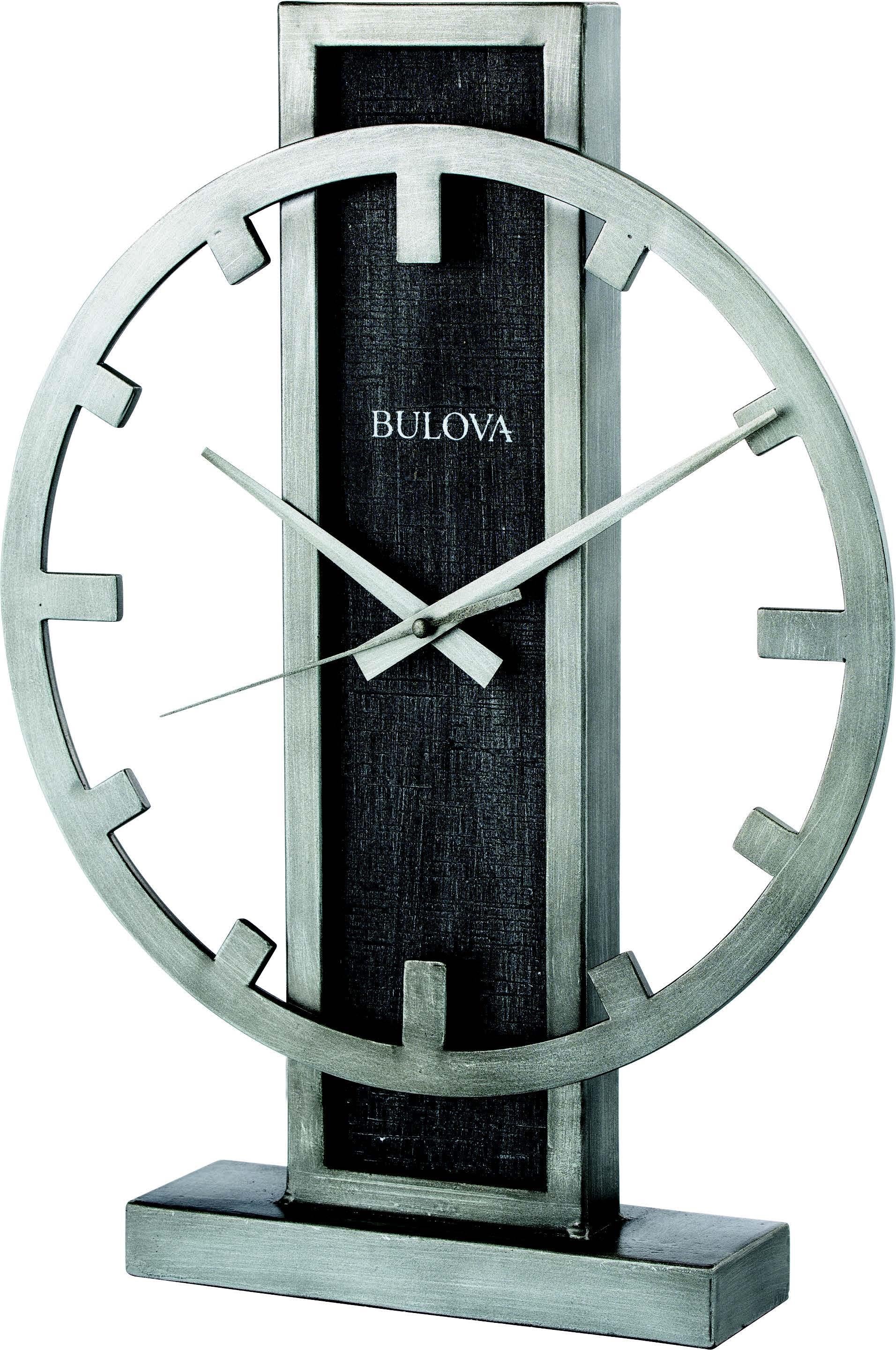 There's a sculptural flair to this contemporary tabletop design with aged silver-tone metal case. Silent-sweep (no ticking) second hand glides smoothly around the hand-cut open dial.