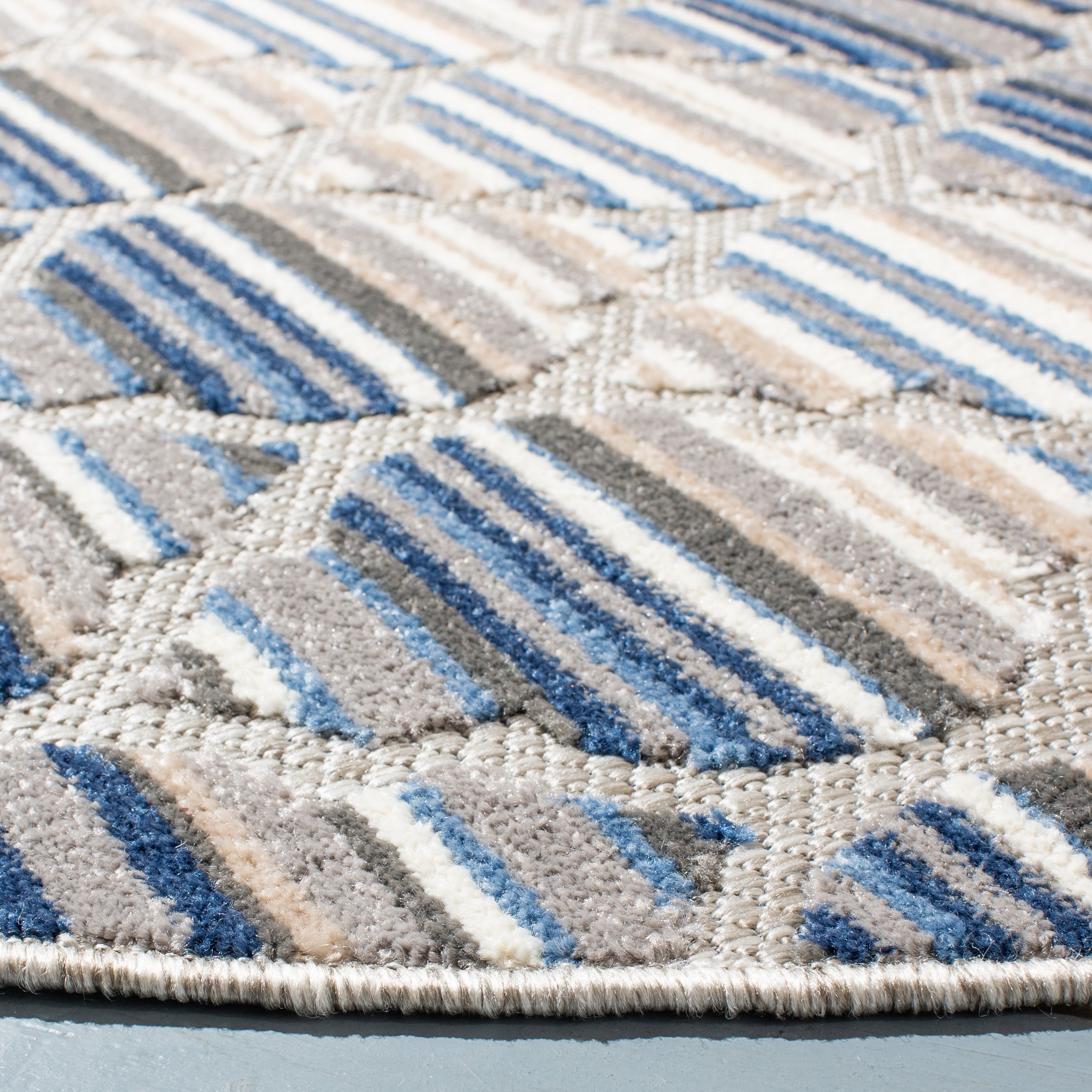 Cabana 5'3" X 5'3" Round Blue & Gray Rug
