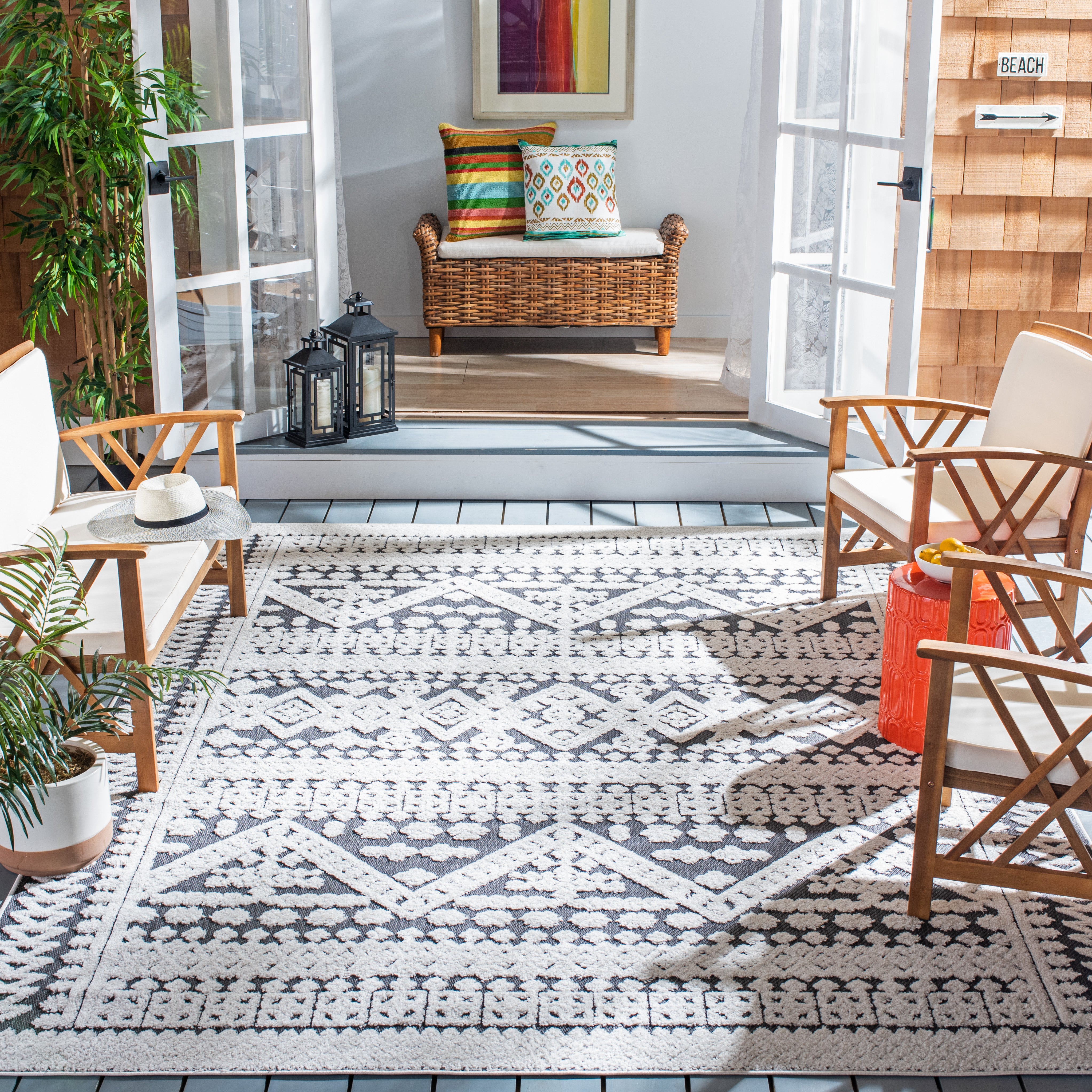 Cabana Indoor/Outdoor Rugs offer a selection of elaborate floor coverings for any busy area of the home, inside or out. Playful florals, lush vines, and fanciful geometric motifs brim with "staycation" vibes on any deck, porch, or patio. Cabana patio rugs are made using durable synthetic yarns for resistance to weather, wear, mold, mildew, and fading from the sun.