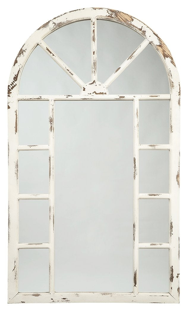 Talk about great window dressing. With its farmhouse window styling, this accent mirror is sure to grace your space in a beautiful way. The heavily distressed white finish mimics the look of chipped paint, for an aesthetic that's all the better for the wear. Whether mounted to a wall or placed on a table or mantle, what a reflection of your good taste.
